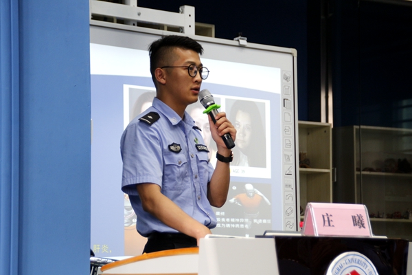 作为一名禁毒干警,庄曦用大量鲜活的事例向听众们介绍了毒品的种类,讲解了毒品带来的危害,以及如何有针对性地拒毒防毒等。“与其事后矫正,不如事先防范”,他呼吁禁毒社的志愿者们一起行动起来,发挥专业作用,勇担社会责任,通过加强青少年的禁毒宣传活动,有助于从源头上减少吸毒人员,深入社区和课堂,实现禁毒宣传常态化、基层化,以此提高全社会识毒、拒毒、防毒的意识,营造全民禁毒的良好氛围。
