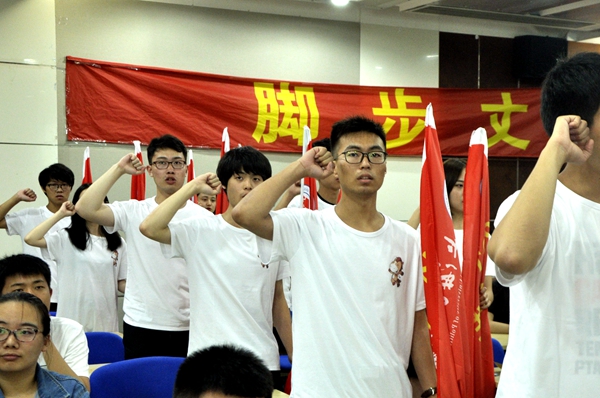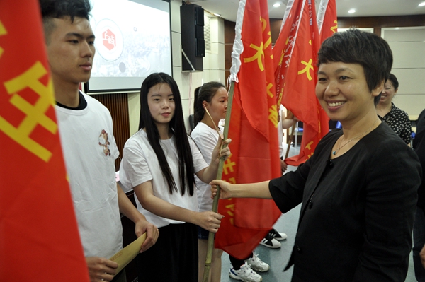 与会领导们向暑期社会实践团队授旗。社会实践学生代表刘新带领全体社会实践团队庄严宣誓,表达了上政青年即将投身社会实践的豪迈与决心,自信与期待。