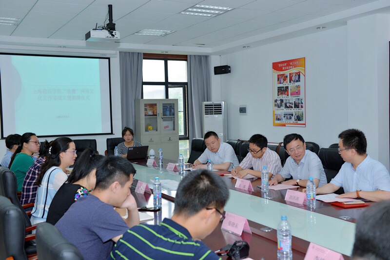 6月28日上午,上海政法学院“雏鹰”网络文化工作室揭牌仪式暨工作研讨会在社会管理学院A2-201会议室举行。校党委副书记吴强、上海教育系统网络发展研究中心副主任段洪涛、上海市委宣传部舆情处屈涛,我校学工部部长刘志强、党委宣传部刘伟伟、科研处副处长赵运锋以及“雏鹰”网络文化工作室全体成员参加了会议。会议由工作室负责人、社会管理学院党总支副书记陈娜主持。