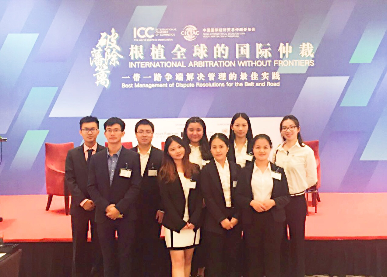 会议期间,我校金融法方向研究生投入到了ICC-CIETAC联合会议的志愿服务之中,他们在会场、机场、酒店等地,承担接待重要发言人、会务、翻译、与会人员注册、接机接站、安全保卫、酒店翻译、餐饮服务等工作。服务之余,他们还与来自英国、中国、葡萄牙、泰国、日本和美国等国家的专家和业内精英进行了交流,了解了行业前沿发展情况、开阔了视野、提高了英语交流能力。