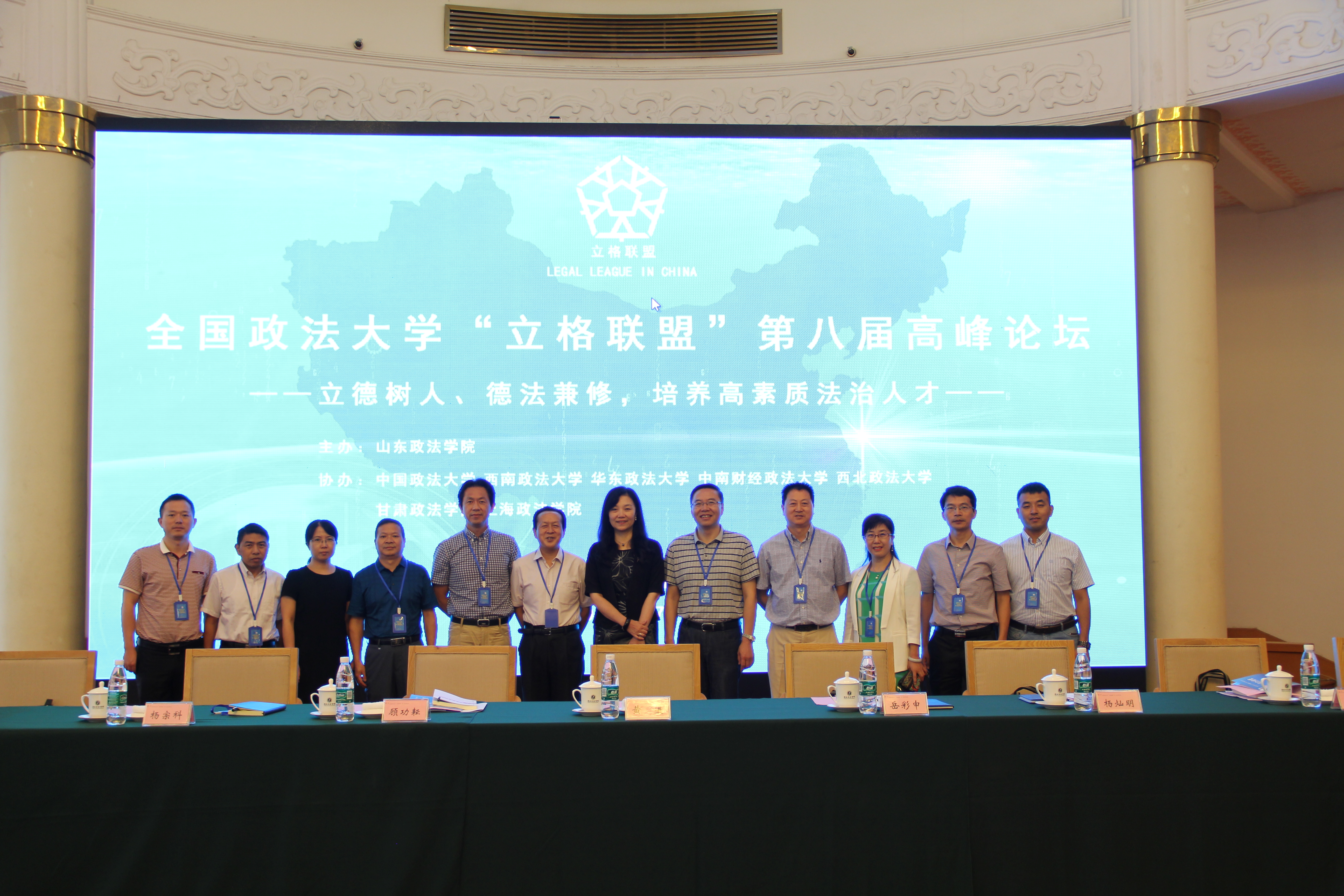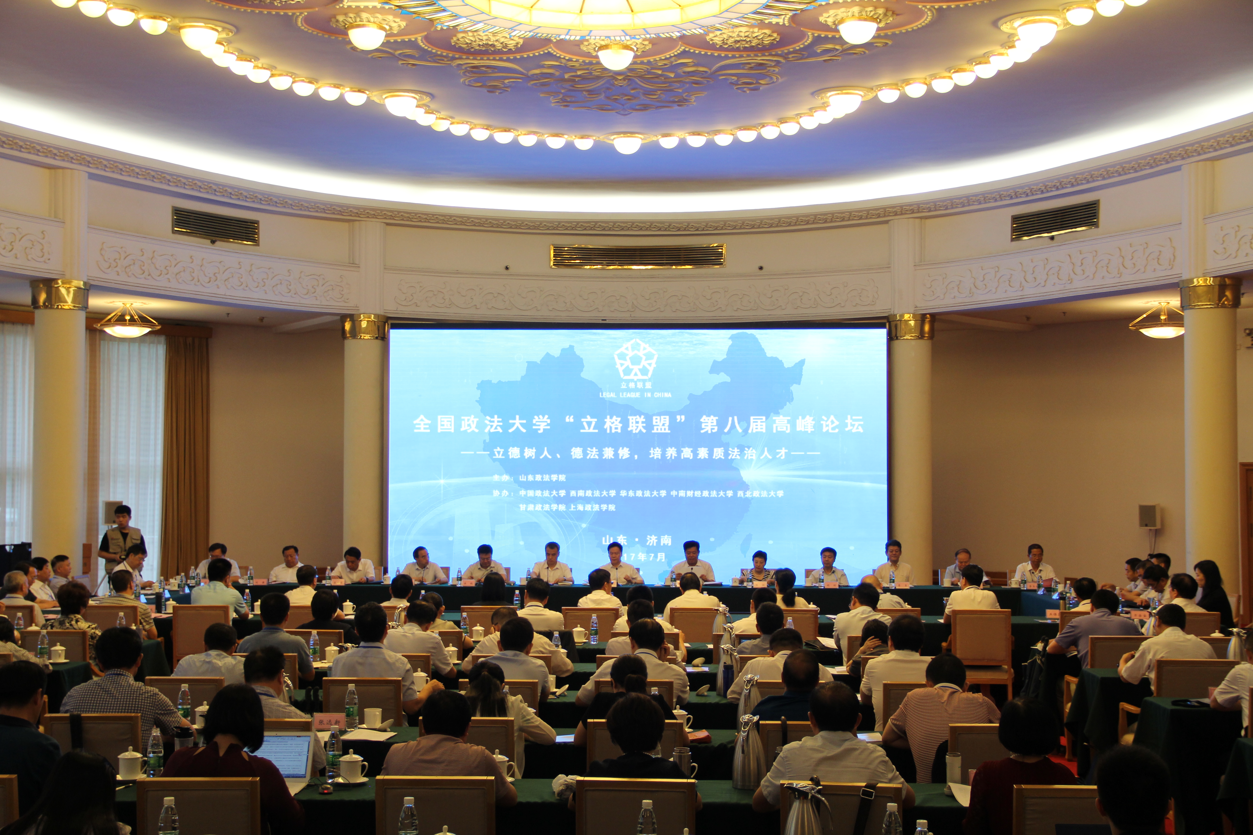 7月18日,由山东政法学院承办的全国政法大学“立格联盟”第八届高峰论坛在济南举行。最高人民法院、最高人民检察院、教育部、司法部,山东省委政法委、山东省高级人民法院、山东省人民检察院、省教育厅、省司法厅领导出席并致辞。“立格联盟”8所高校的校领导及办公室、教务处、科研处、人事处、研究生处、国际交流学院、宣传部等部门负责人出席论坛。我校校长、校党委副书记刘晓红,副校长关保英,副校长潘牧天带领相关职能部门负责人出席论坛。
