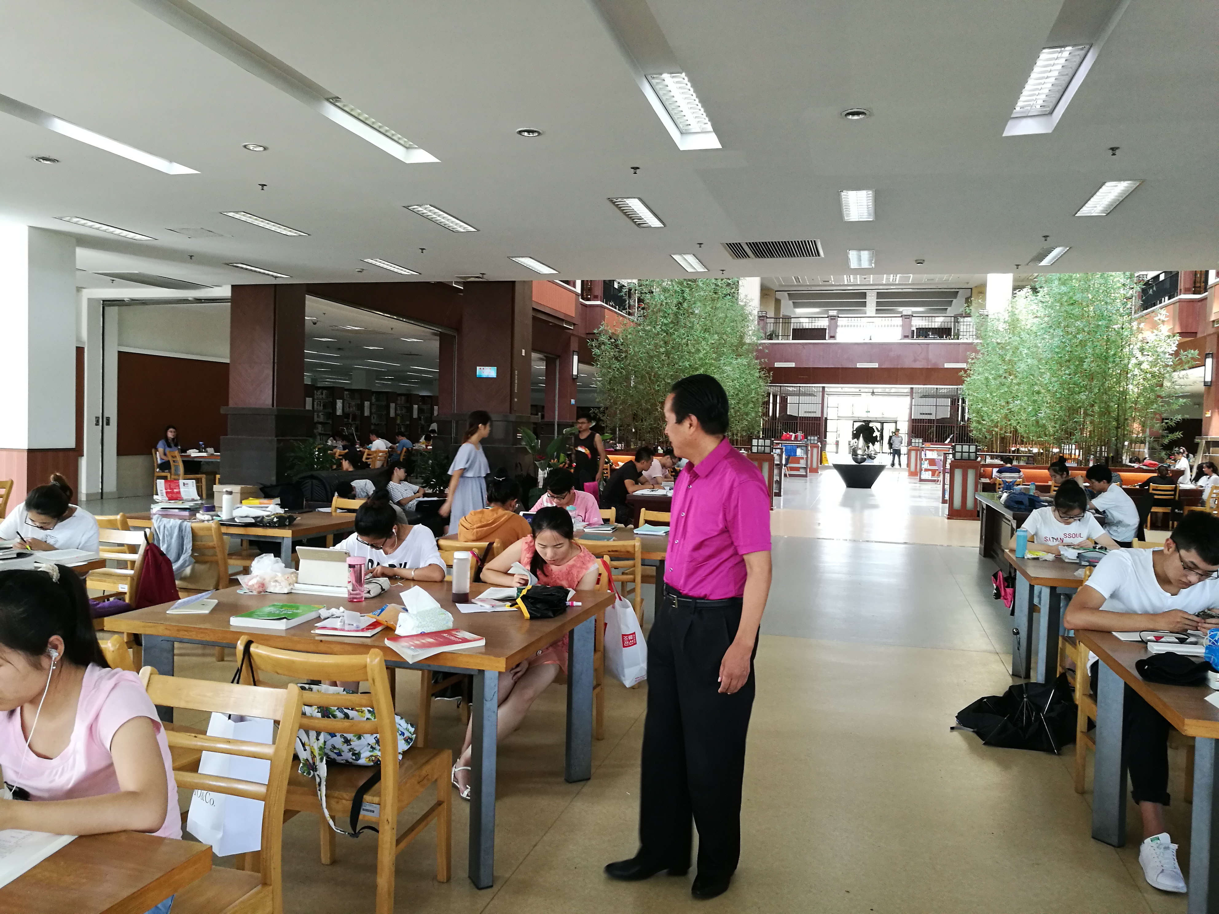 在图书馆工作人员的陪同下,关保英检查了图书馆暑期消防安全、安全保卫、学生学习情况。电子阅览室、自习室井然有序,自习室学生上座率很高、学习氛围浓厚。工作人员准点上岗,图书馆通风、制冷、门进、网络系统正常运行。