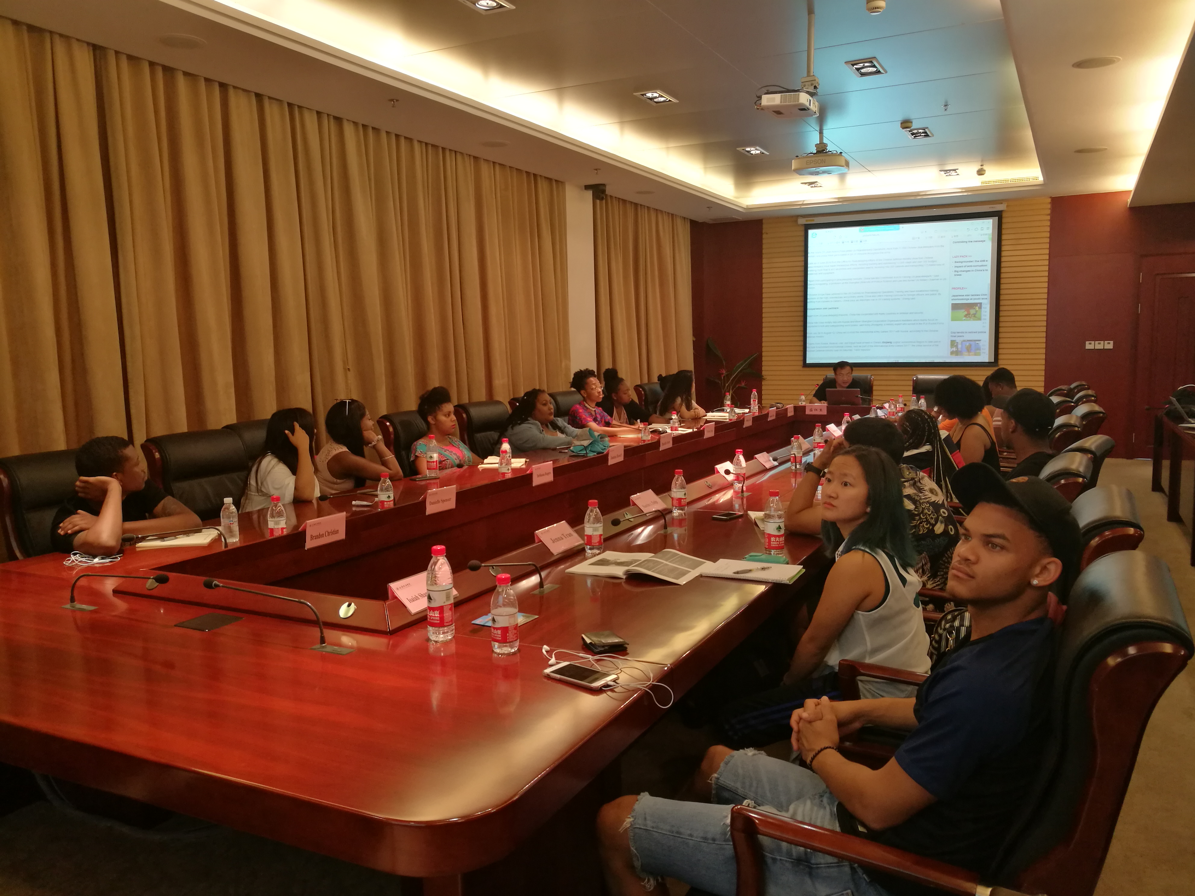 除了文化体验活动,国际交流学院还安排了丰富的全英文讲座。欧阳美和教授、盛红生教授、赵微副教授、郭金兰副教授分别做了题为《中西方文化比较》《上合组织与中国周边关系》《中国近代史与上海》《中国网络技术与应用》的精彩讲座,引起了同学们浓厚的兴趣。美国学生Christian说:“通过此次研修活动,我认识了一个真实的中国,同时,也对中美之间的异同有了更深层次的理解和思考。与中国师生朝夕相处、与中国文化亲密接触、深入了解两国文化差异等活动成为我最美好的记忆。”(周怡撰稿 王罗超摄影)