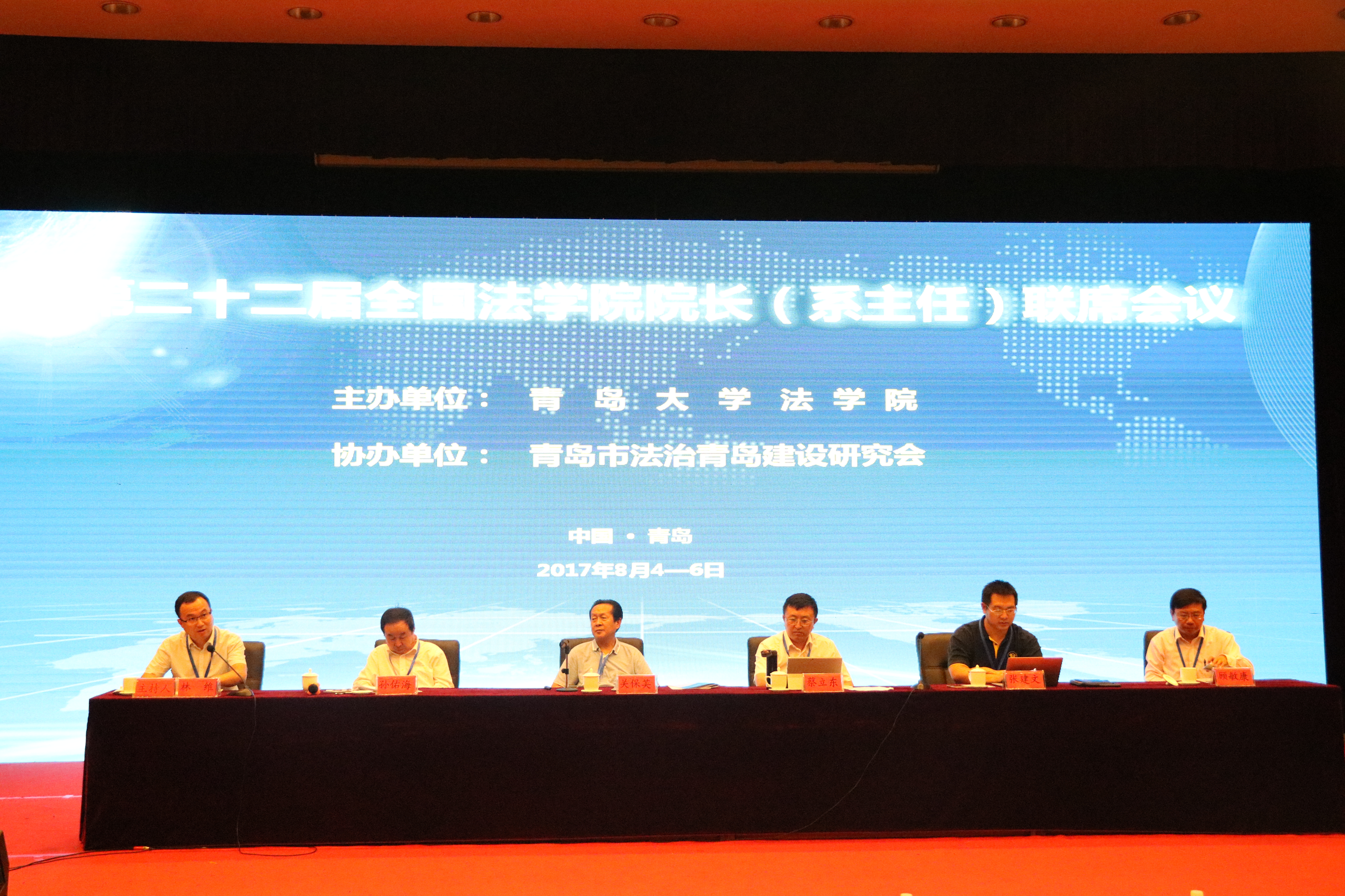 8月4日至6日,第二十二届全国高校法学院院长联席会议在山东青岛召开。会议由青岛大学法学院主办、青岛市法治青岛建设研究会协办。青岛市人大常委会副主任邹川宁、中国法学会研究部副部长彭伶、青岛大学副校长夏东伟等出席会议并致辞。我校副校长关保英教授应邀出席会议并做主旨演讲,警务学院党总支副书记储德峰副研究员参加会议。