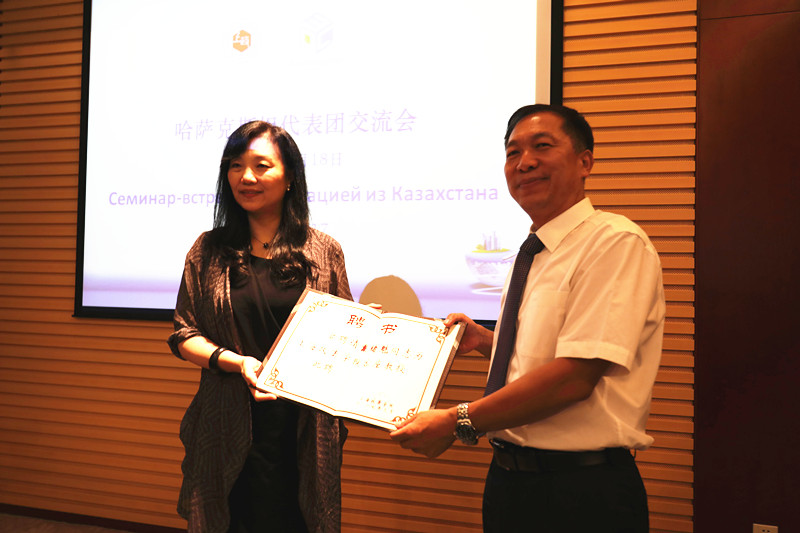 随后,刘晓红为戴绪魁颁发我校客座教授聘书,关保英为布拉姆拜·谢里克授上合培训基地纪念金章。简单仪式之后,双方互赠礼品并合影留念。(上官心茗撰稿 李钰摄影)