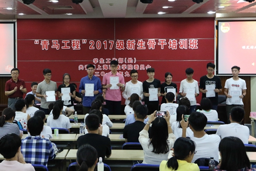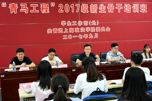 本次“青马工程”上海政法学院2017级新生骨干培训班是为了充分发挥“以新带新,以新促新”的朋辈教育功效而开展的新尝试,旨在在2017级大学生群体中形成有效的情感共鸣和价值引导,促进大学生自我服务、自我教育、自我管理。(杨稼轩撰稿 翟贝尔、彭佑涵摄影)