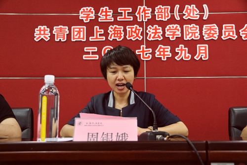 9月12日下午,“青马工程”上海政法学院2017级新生骨干培训班结业仪式在信教101会议室顺利举行,校党委副书记、副校长周银娥出席结业仪式并讲话,学生工作部部长刘志强、校团委书记陆嵬以及来自各二级学院的110名培训班学员参加本次结业仪式。