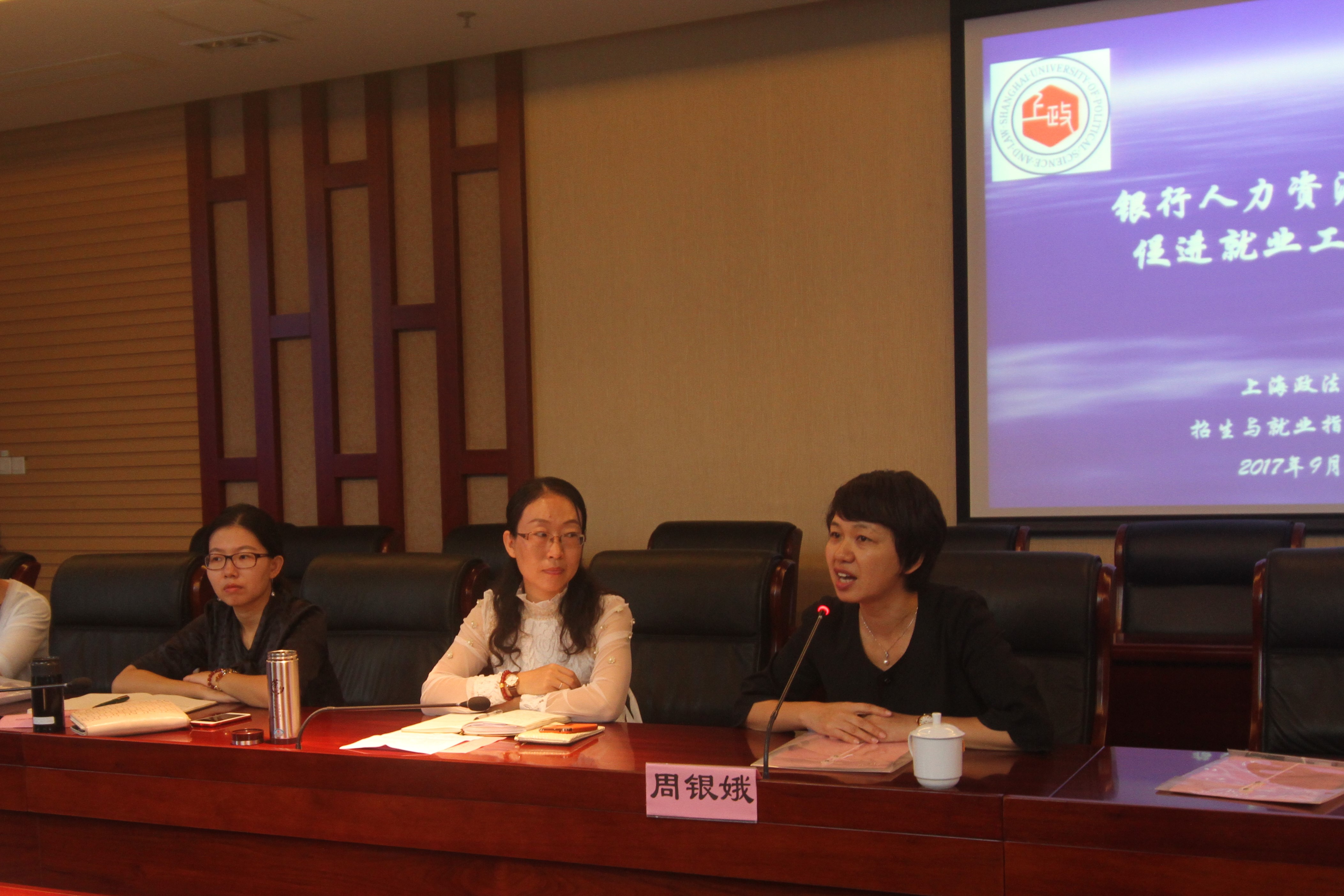 每年的9-10月,是银行系统面向2018届毕业生进行校园招聘的网申报名高峰期,我校2017届毕业生在银行系统就业人数呈上升态势,并得到了毕业生的欢迎。为进一步与银行系统加强交流、互相联动、深化合作、实现共赢,9月25日下午,我校招生就业办在综合研究中心101会议室组织召开了部分银行人力资源部负责人促进就业工作研讨会。中国工商银行上海市分行、中国农业银行上海市分行、中国银行上海分行、交通银行上海分行、上海农村商业银行、中国邮政储蓄银行上海市分行、上海银行、宁波银行等银行人力资源部负责人参加了研讨会。校党委副书记、副校长周银娥出席会议并讲话。招生就业办相关人员、二级学院党总支副书记及辅导员参加了会议。会议由招生就业办副主任徐丽红主持。