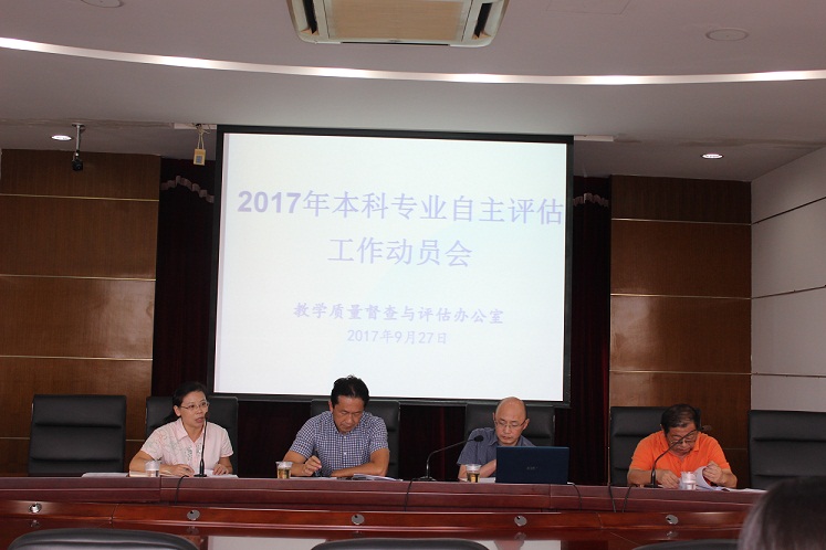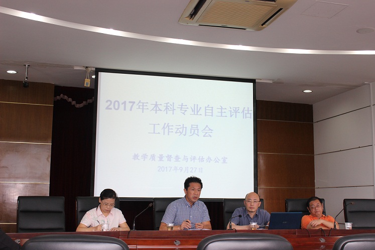 为推进学校教学质量保障体系建设,建立常态化的本科专业评估制度,进一步做好学校本科专业自主评估工作,9月27日下午,学校在求实楼513会议室召开了2017年本科专业(法学门类)自主评估工作动员会。会议由教学质量督查与评估办公室召开,教务处处长袁胜育主持,相关二级学院教学副院长、教学秘书及专业负责人参加了会议。