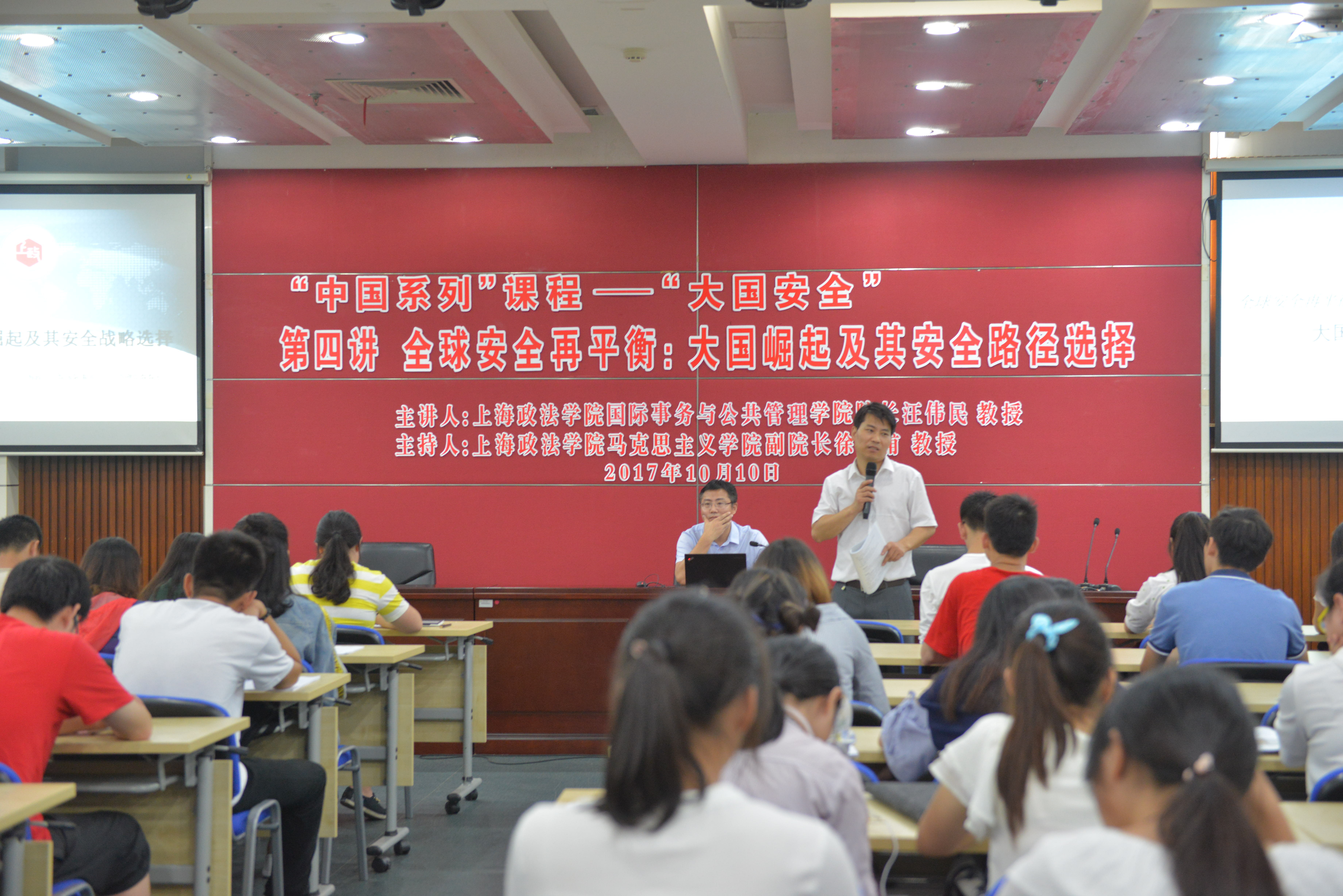 10月10日晚,我校“中国系列”课程——“大国安全”第二季第四课由国际事务与公共管理学院院长汪伟民教授讲授,马克思主义学院副院长徐世甫教授现场主持互动。