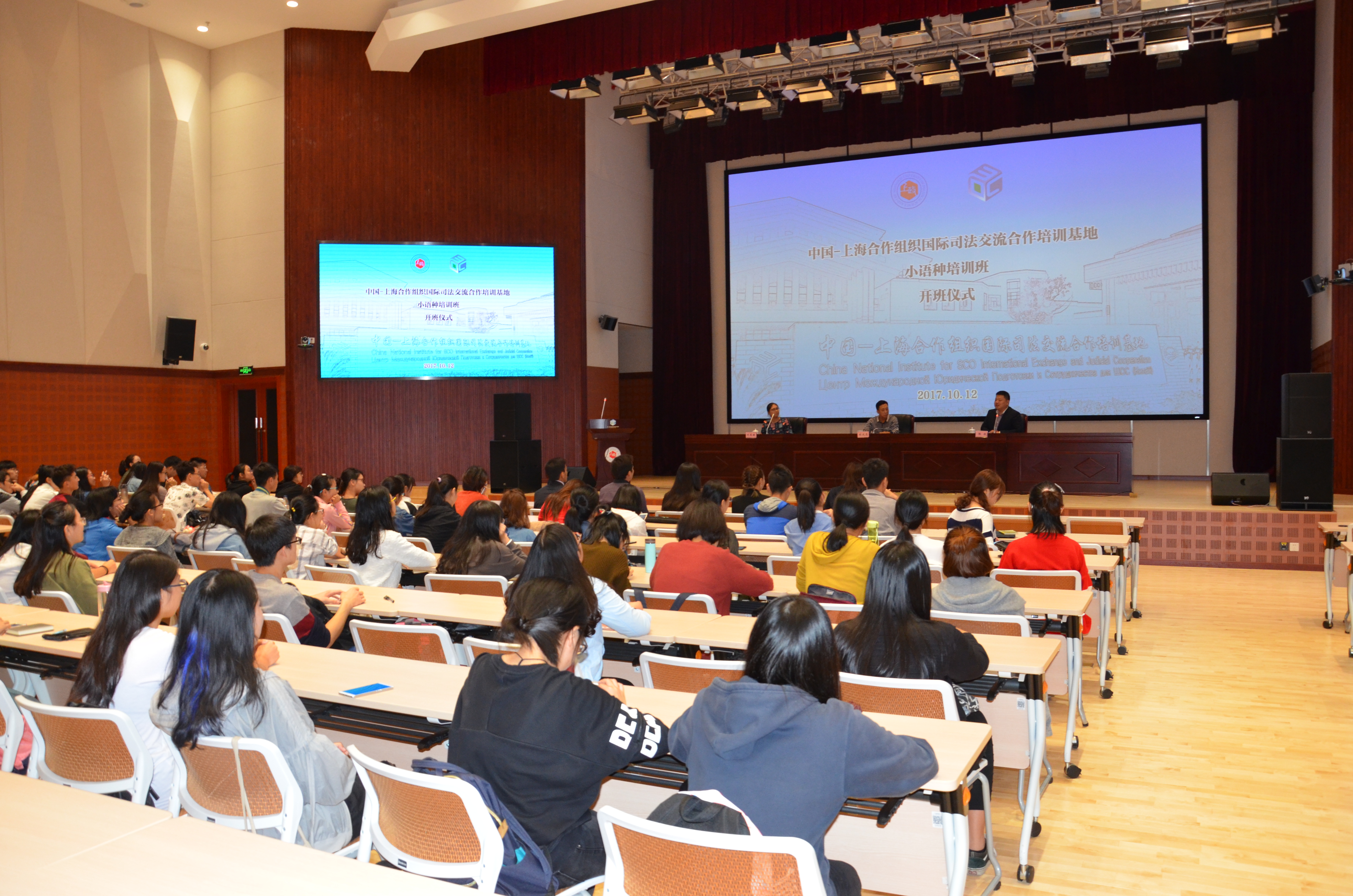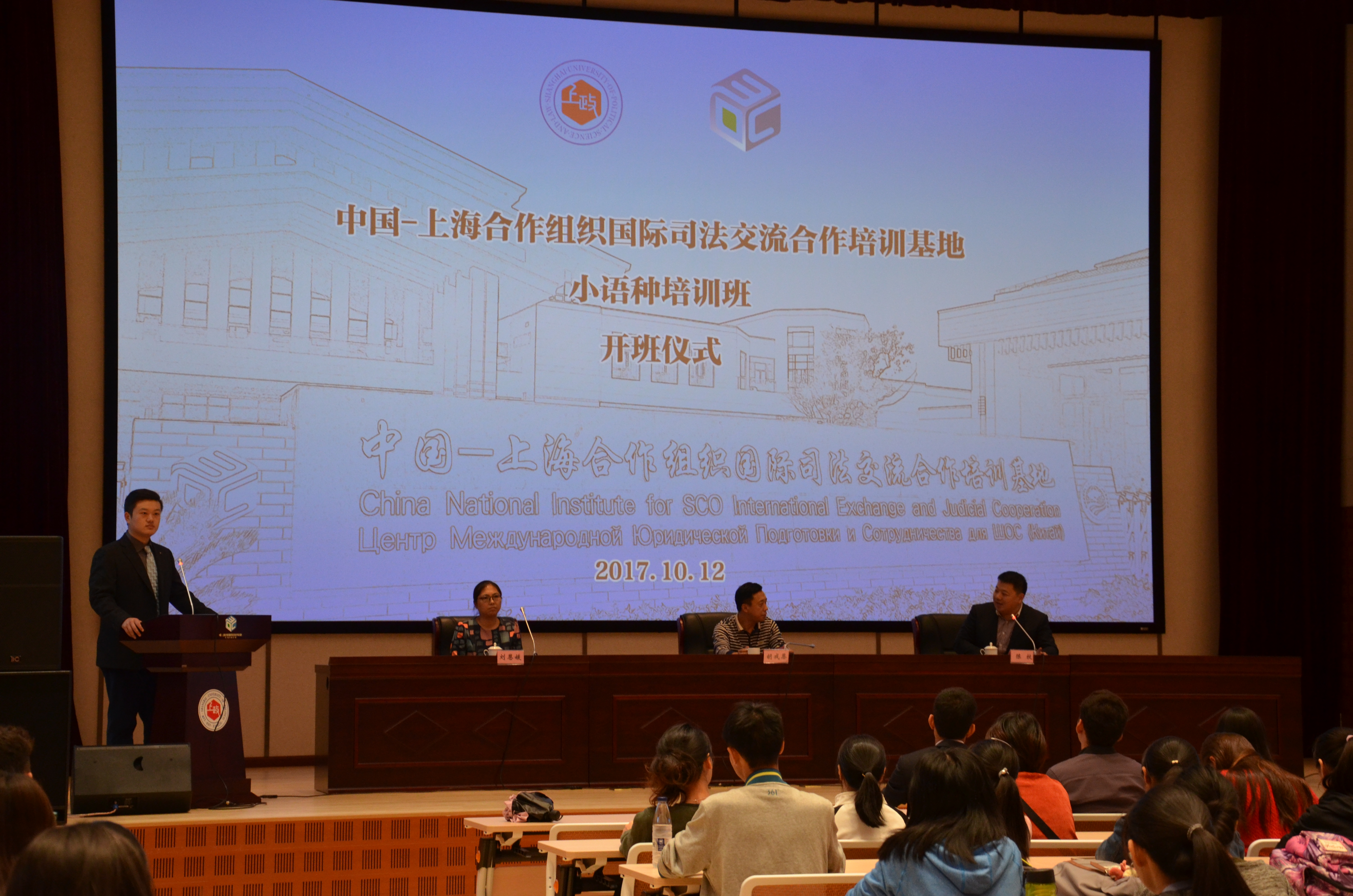 10月12日中午,中国-上海合作组织国际司法交流合作培训基地小语种培训班开班仪式在培训基地国际会议中心顺利举办。经济法学院院长胡戎恩、上合培训基地管委会秘书处副秘书长陈校、国际法学院副教授刘恩媛出席了开班仪式。开班仪式由上合培训基地小语种培训班班主任董潇君主持。