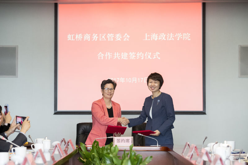 10月17日上午,上海政法学院与虹桥商务区管委会战略合作协议签订仪式在虹桥商务区公共事务大厦举行。上海政法学院校党委副书记、副校长周银娥,虹桥商务区管委会党组成员、副主任费小妹出席仪式,虹桥商务区管委会机关党委、办公室、商务处、企业处、法规处、入驻企业代表,上海政法学院党办校办、学工办、招就办、合作发展处、继续教育学院、团委等相关部门负责人参加了活动。
