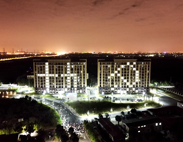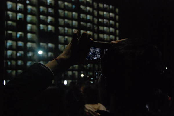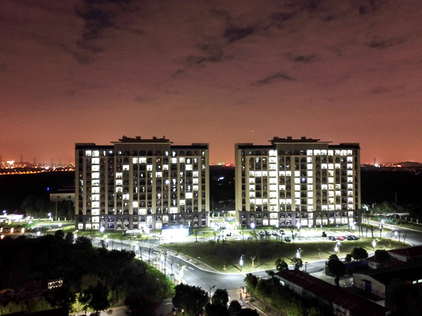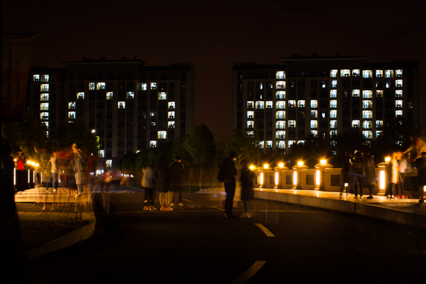 今年新建成并投入使用的学生公寓28、29号宿舍楼成为了上政学子的“表白墙”。在活动开始前,就有学生早早拿出手机,在楼前守候,以记录激动人心的场景。随着约定的时间到来,被同学们称为“佘山第一小高层”的楼宇在夜色中散发出明亮的灯光,一间间宿舍楼的灯光经过同学们的精心设计和排列组合,先后由“I♥中国”变化为汉字“十九”和中国共产党党徽“☭”的图案,在场的同学们自发地唱起了整齐响亮的国歌,表达至臻深情。当天夜晚,朋友圈被亮灯行动的美景刷屏,上政不眠。
