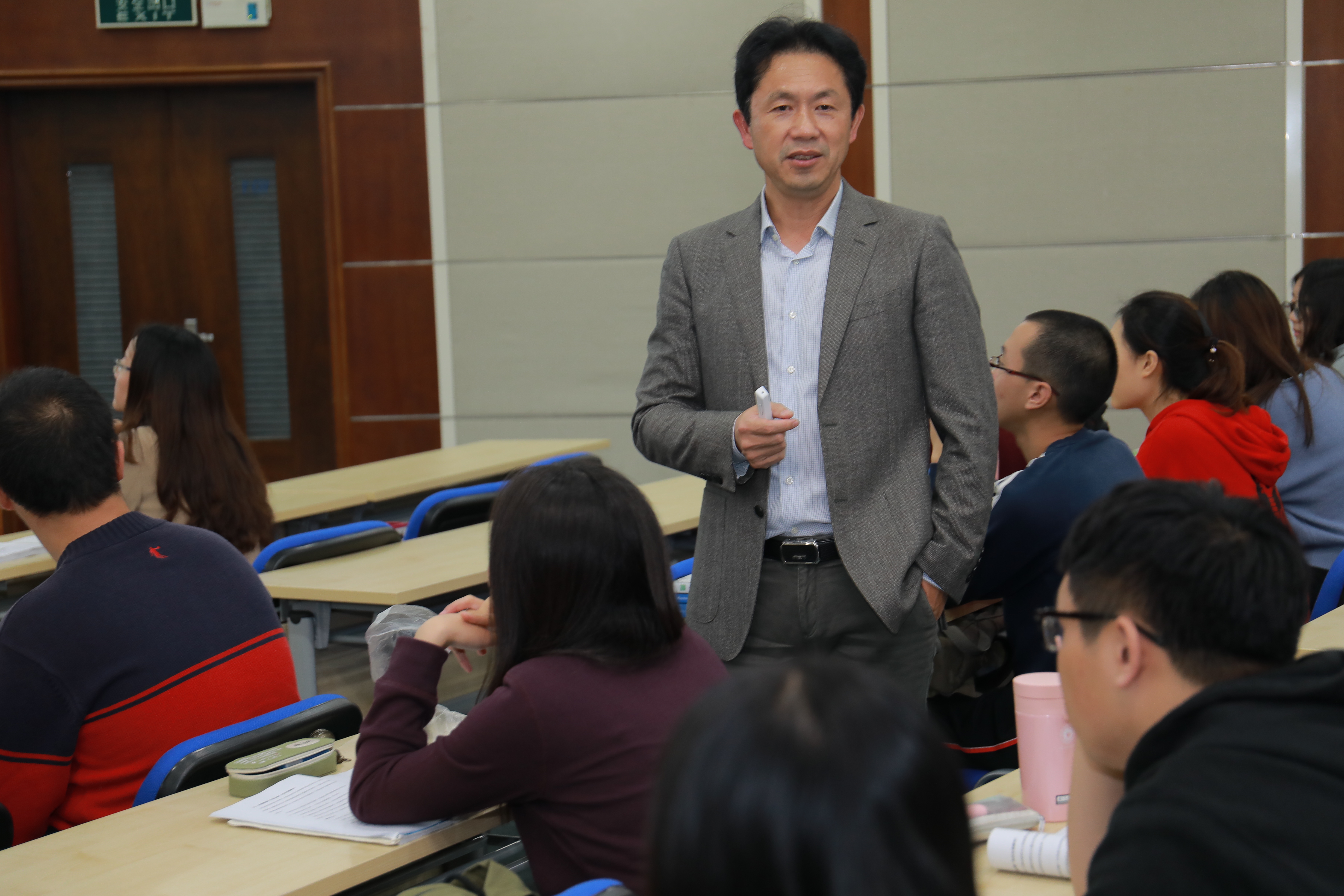 袁胜育首先回顾了恐怖主义的演变历史,接着,就恐怖主义的概念展开互动讨论,引导学生思考恐怖主义与犯罪的区别。他讲解了恐怖主义的主体、目的、手段及产生根源,重点阐释了现阶段国际恐怖主义的主要特点及中国面临的严峻反恐形势。他认为,恐怖主义作为一种社会现象,未来还将继续存在,危害世界安全。恐怖主义的这些发展趋势对中国“一带一路”战略及海外安全与利益构成很大威胁。为应对恐怖主义威胁,他提出三点对策:第一,要以总体国家安全观为战略指导,全面系统谋划反恐怖对策体系。第二,以《反恐怖主义法》《国家安全法》等法律为依据,依法落实反恐怖政策措施。第三,综合运用防范和打击措施。统筹国内反恐和国际反恐格局,加强反恐国际合作,加强海外安保和海外利益保护工作。