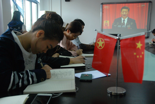 总书记的发言中多次响起热烈的掌声,我校青年团员对总书记的讲话内容展开热烈交流,从“八项规定”到“反‘四风’”,党对自身发展的要求严上加严,为不断提升各级党组织创造力、凝聚力、战斗力迈出重要一步;从‘简政放权’’到全面深化改革,我国摸索了一条中国特色的改革发展之路;从“一带一路”到“供给侧改革”,产业结构优化成效显著,人民生活水平逐步提高,在中国共产党的领导下,我国的经济发展令世界瞩目称赞;总书记多次亲临贫困山区,做出“精准扶贫”的重要指示,让全社会共享经济发展的果实,成为落到实处的承诺。
