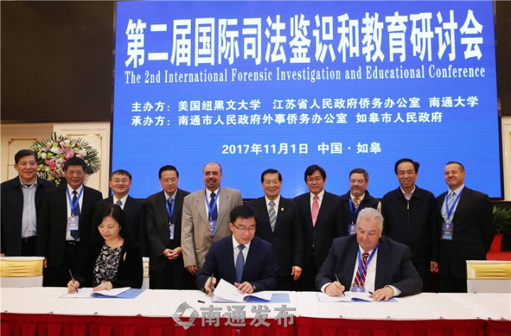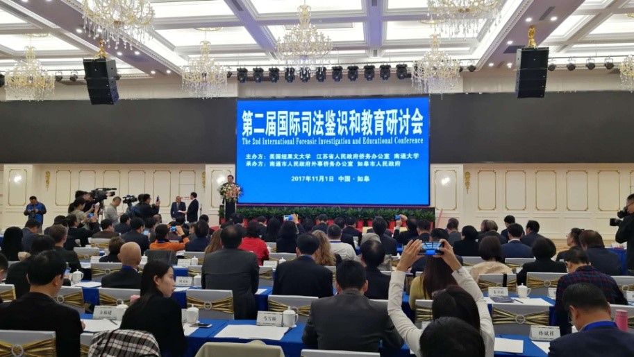 11月1日,第二届国际司法鉴识和教育研讨会在江苏如皋召开。此次国际研讨会由我校名誉教授、世界著名刑侦鉴识专家李昌钰博士牵头,美国纽黑文大学、江苏省人民政府侨务办公室、南通大学主办,南通市人民政府外事侨务办公室、如皋市人民政府承办。来自美国、俄罗斯、印度、波兰、丹麦等20多个国家和地区以及国内19所高校科研院所的专家学者200余人,共同探讨了现代科学技术在刑侦工作中的运用和教育等课题。江苏省委政法委副书记侍鹏,江苏省侨办主任王华,南通市委常委、政法委书记姜永华等出席开幕式。我校刘晓红校长出席会议,代表学校签署合作办学备忘录,并作主题演讲。