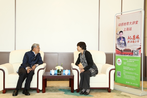 讲座前,学党委副书记、副校长周银娥在培训基地会见了纪连海老师,对其到我校为青年学生开设讲座表示欢迎和感谢,并介绍了学校的事业发展概况。