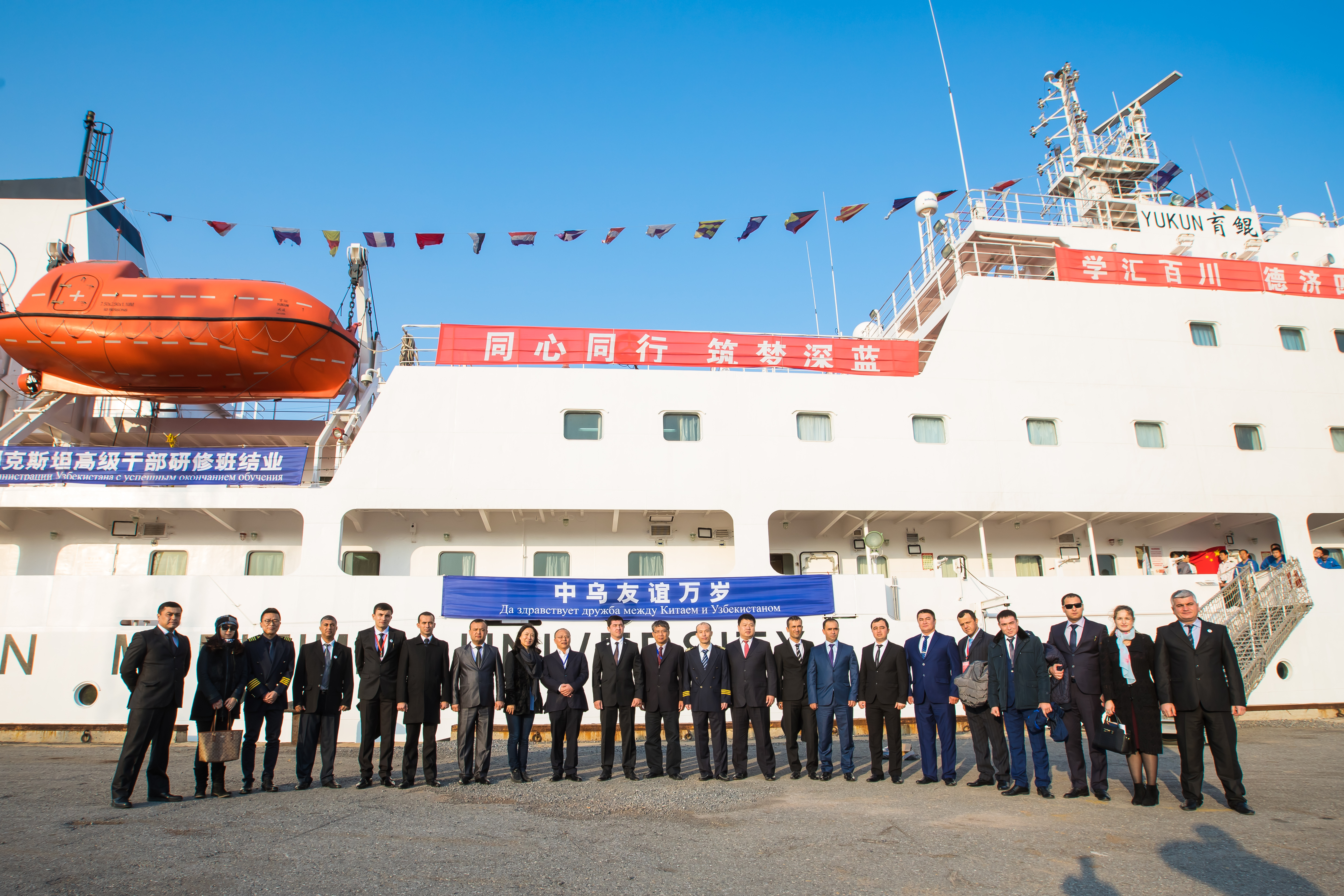11月5日下午,乌兹别克斯坦高级执法官员研修班结业典礼在大连海事大学举行。乌兹别克斯坦代表团团长卡里莫夫,上海政法学院国际交流处处长、中国-上海合作组织国际司法交流合作培训基地管委会副主任王蔚,大连海事大学留学生教育中心副主任彭雪飞,大连海事大学国有资产与实验室管理处副处长李国进和乌方13名学员共同出席结业典礼。典礼由上合培训基地管委会秘书处副秘书长陈校主持。