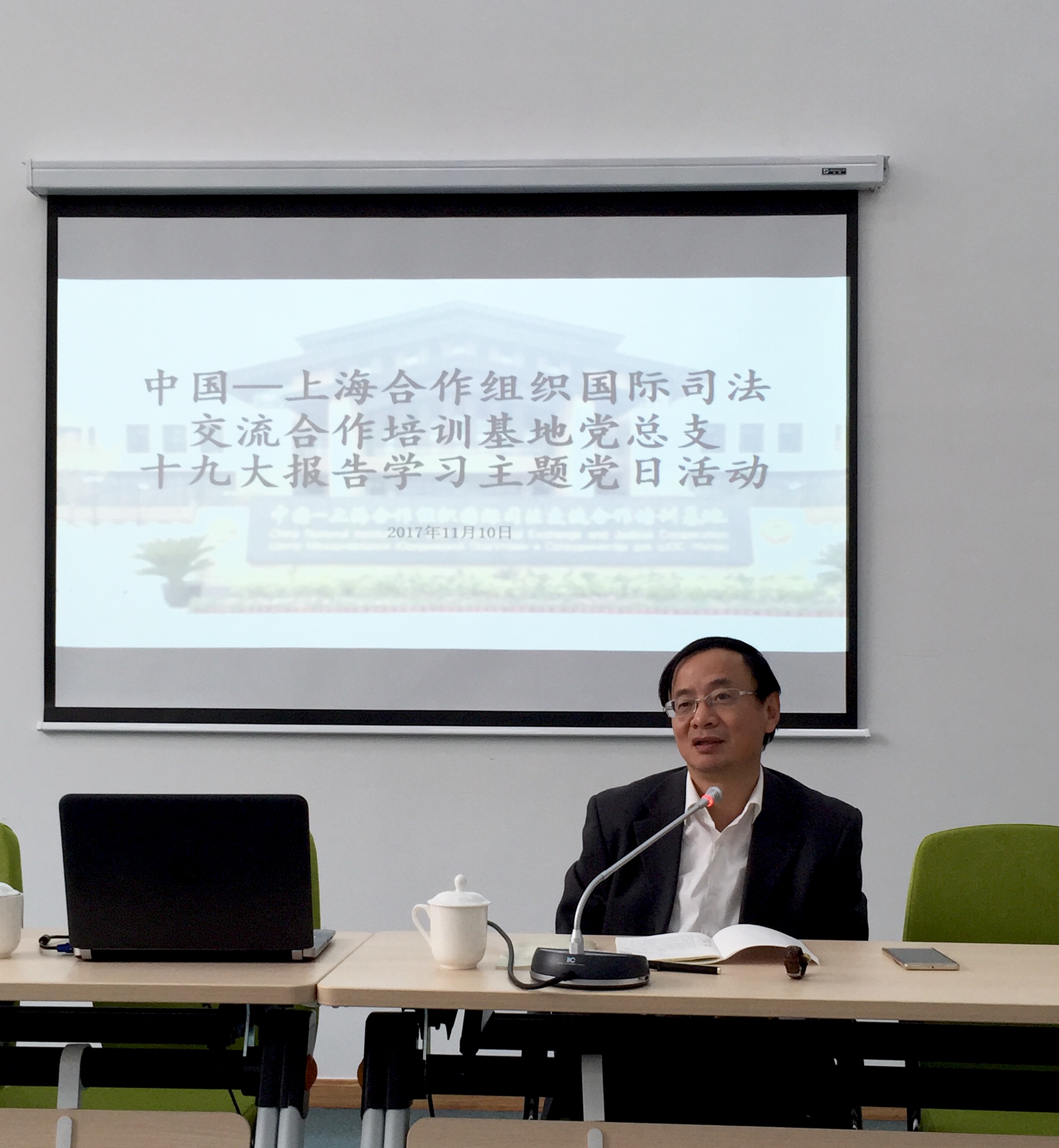 11月10日下午,上合培训基地党总支组织党的十九大报告学习主题党日活动。校党委副书记、纪委书记、上合培训基地党总支书记吴强带领全体总支党员对党的十九大报告全文做了认真全面细致的学习,学习会由上合培训基地一支部书记丁云宝主持。