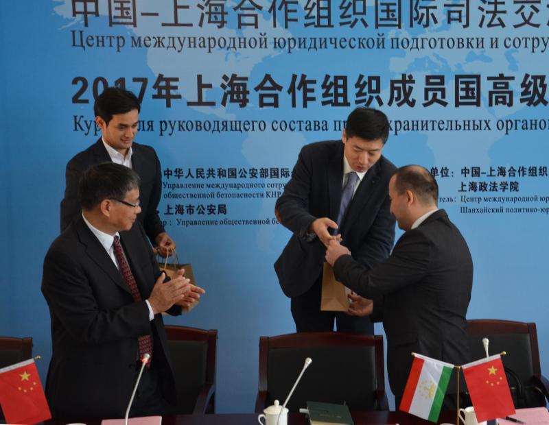 11月11日上午,由公安部主办,上海市公安局协办,中国-上海合作组织国际司法交流合作培训基地承办的“2017年塔吉克斯坦内务机关领导研修班”在上海政法学院举行。塔吉克斯坦代表团萨里姆鲍伊佐达·冬瓦尔上校等13名学员出席开班典礼。