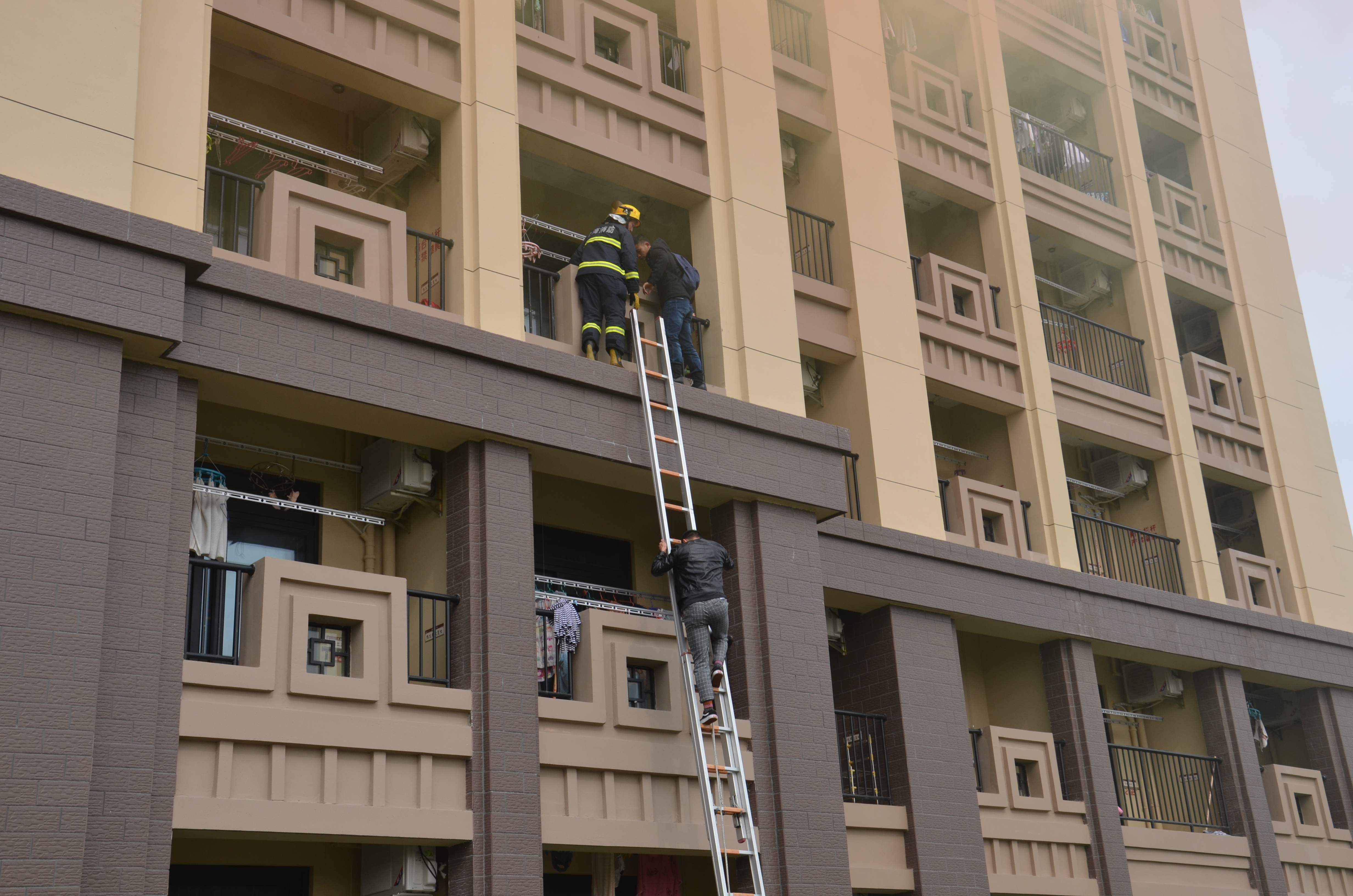 11月14日中午,我校保卫处按照实战要求与学生处、后保处等部门联合开展高层学生公寓应急逃生暨消防技能演练。保卫处处长郭玉生、学生处处长刘志强、后勤保障处副处长祝耀明、各二级学院党总支副书记出席,留学生、退伍军人等学生代表、保安、宿管、后勤人员等参加。