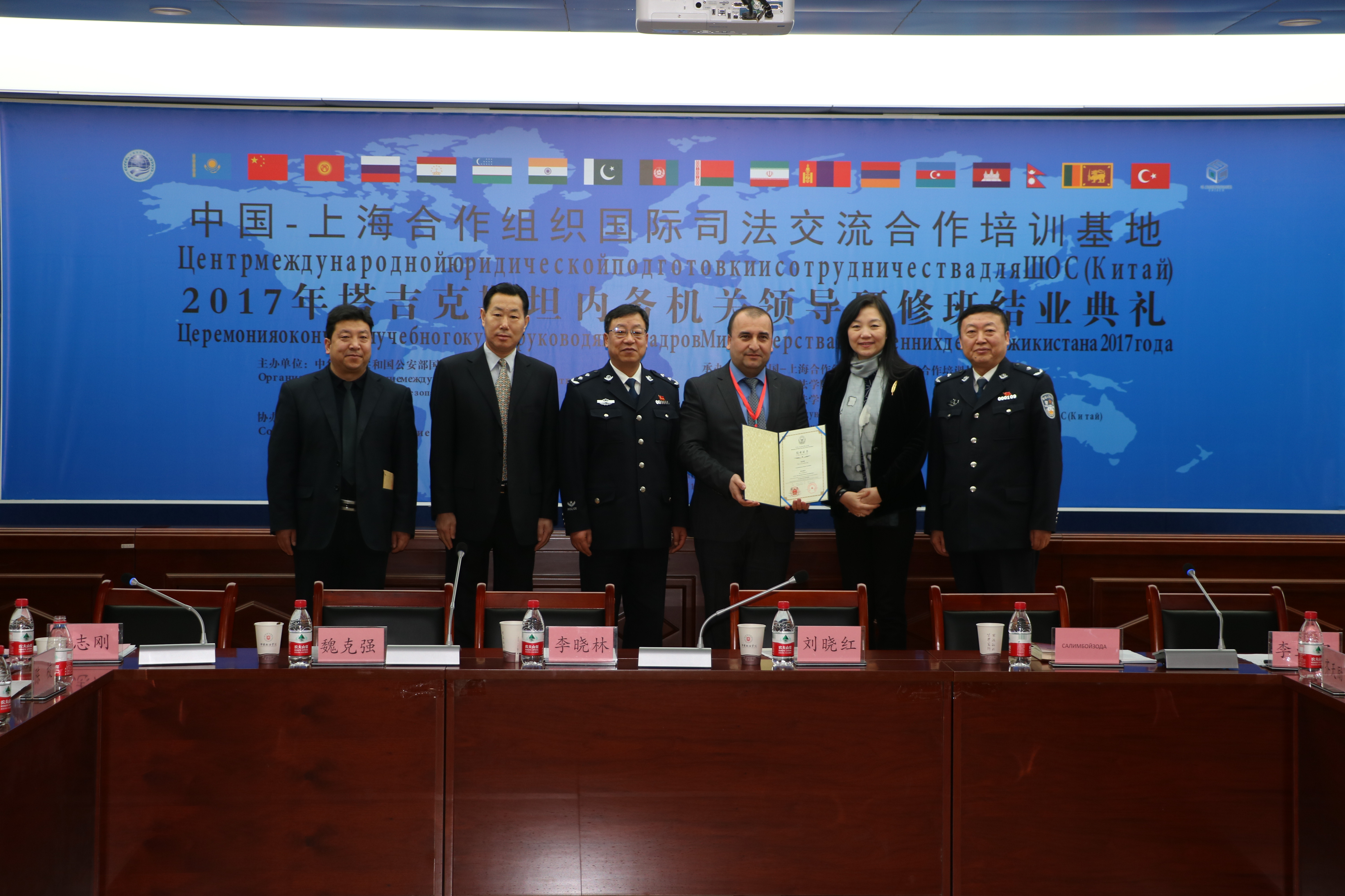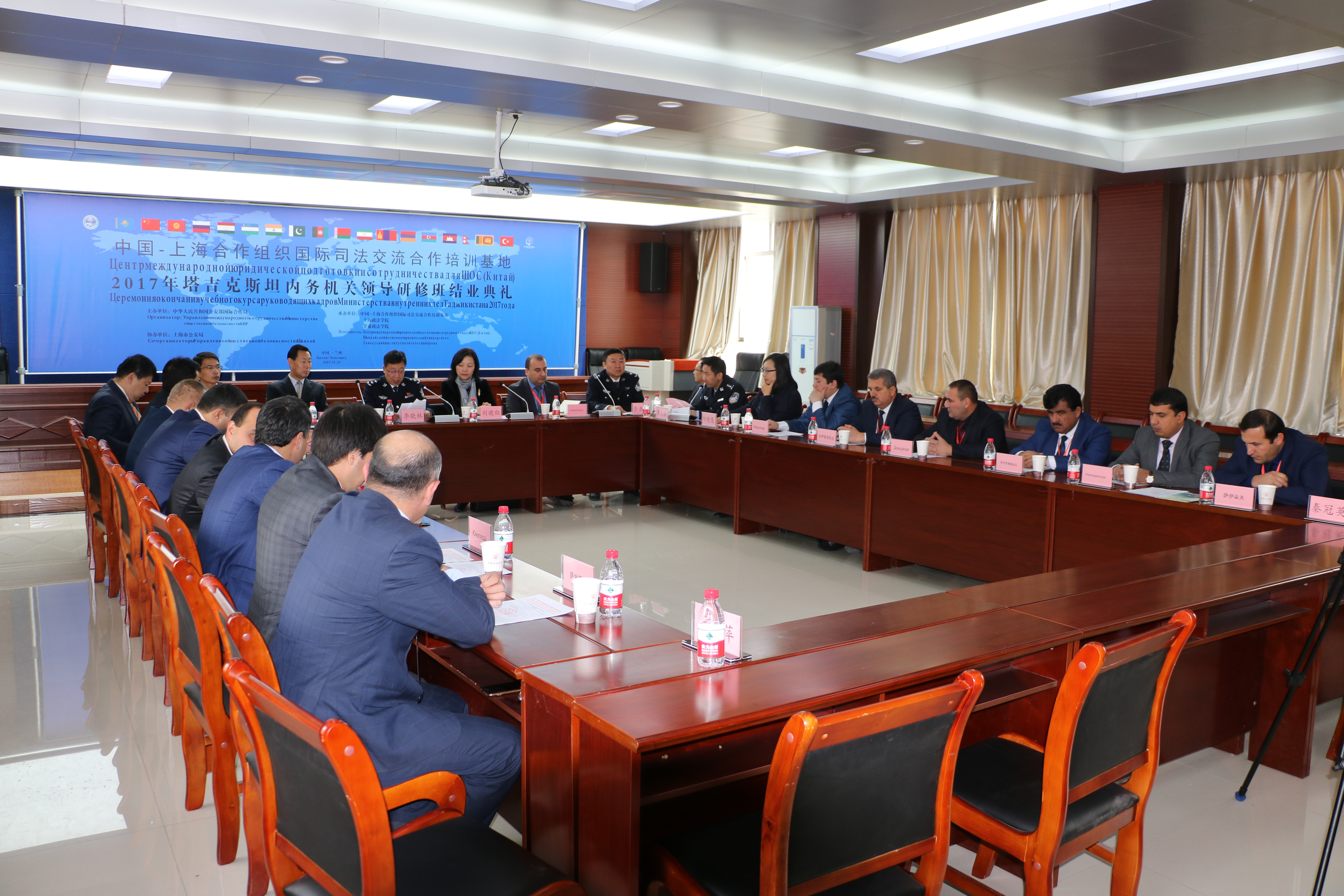 11月21日上午,塔吉克斯坦内务机关领导研修班结业典礼在甘肃政法学院举行。上海政法学院校长、中国-上海合作组织国际司法交流合作培训基地管委会主任刘晓红教授,甘肃省公安厅党委委员、副厅长李晓林,甘肃政法学院副校长魏克强教授,甘肃省公安厅出入境管理局局长、国合处处长、国际刑警组织甘肃联络中心主任李亚宏,甘肃政法学院公安分院院长陈君武教授,上合培训基地管委会秘书处副秘书长陈校,中南财经政法大学反恐中心甘肃基地主任秦冠英,上合培训基地管委会秘书处培训部副主任印晓慧等出席结业典礼。典礼由上海政法学院党办校办主任、上合培训基地管委会秘书处副秘书长高志刚主持。