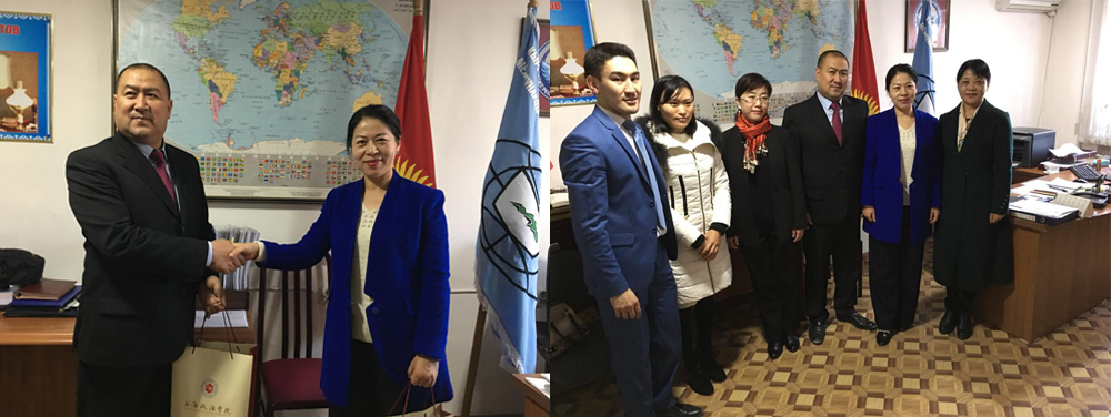 在吉尔吉斯斯坦国际大学访问、交流期间,吉尔吉斯斯坦国际大学副校长兼人文法律学院院长艾尔金别科夫·吉雷奇别克·艾尔金别维奇教授会见了我校访问团,对我校代表团的来访表示热烈欢迎,并介绍了该校的历史、学科及办学特色。我校代表团团长姚善英对表示衷心感谢,并详细介绍了我校在学科建设、人才培养、科学研究及社会服务方面的优势和特色,重点介绍了上合培训基地的建设和运行情况。吉方表示希望与我校在科研、人才培养等方面展开深入合作。