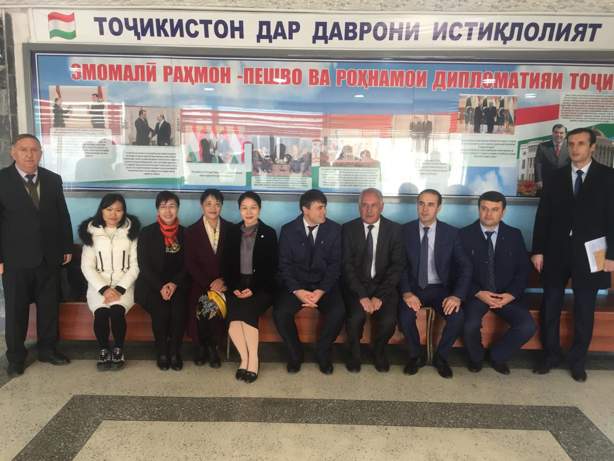 在塔吉克斯坦国家大学访问期间,我校代表团受到了热情接待。副校长萨法尔马马多夫教授亲自去机场迎接我校代表团,还安排了非常周全的交流活动。塔吉克斯坦国家大学是塔吉克斯坦最高学府,校长由总统亲自任命。该校有学生24800人,拥有学士学位、硕士学位、博士学位授予资格;在职在岗教师有1200多人,一半以上的教师拥有博士学位。