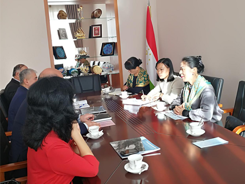 萨法尔马马多夫详细介绍了塔吉克斯坦国家大学在该国的地位和影响力,表示愿意与我校在科学研究、人才培养、学科建设等方面展开全方位合作。姚善英介绍了我校的学科建设亮点及人才培养特色和优势,并重点介绍了上合培训基地和最高人民法院“一带一路”司法研究基地以及相关智库的建设和运行情况。