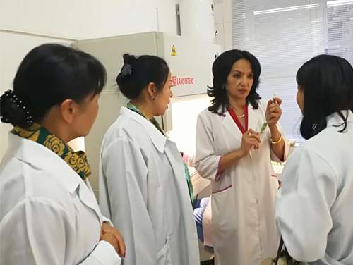 11月22日下午,塔吉克斯坦国家大学专程安排我校代表团参观了该校的国家级生物实验室,生物技术中心主任波波忠诺娃教授全程陪同并介绍了该实验室的建设和运行情况。