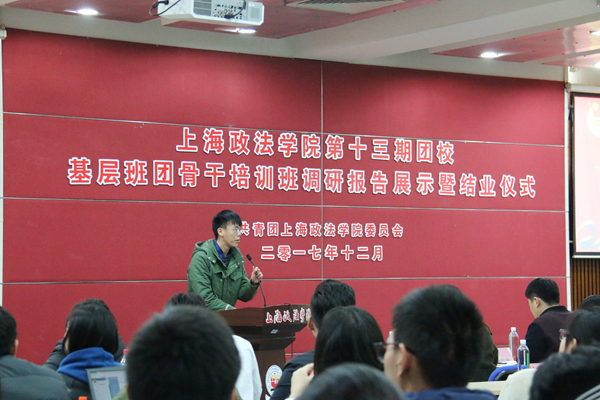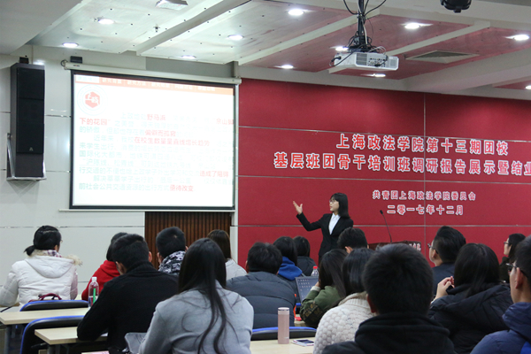 12月5日下午,上海政法学院第十三期团校——基层班团骨干培训班调研交流展示暨结业仪式于信教101会议室顺利举行,校党委副书记、副校长周银娥出席并讲话,校团委书记陆嵬、校团委副书记孙留华、各二级学院团委书记及111名团校学员参加了本次活动。