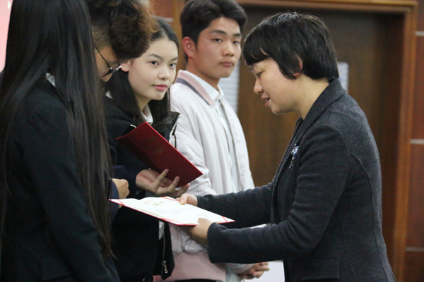 在结业仪式上,陆嵬首先对本期团校的情况进行总结,并宣读了结业学员名单。周银娥宣读优秀学员、优秀调研小组名单,并为他们颁发荣誉证书。