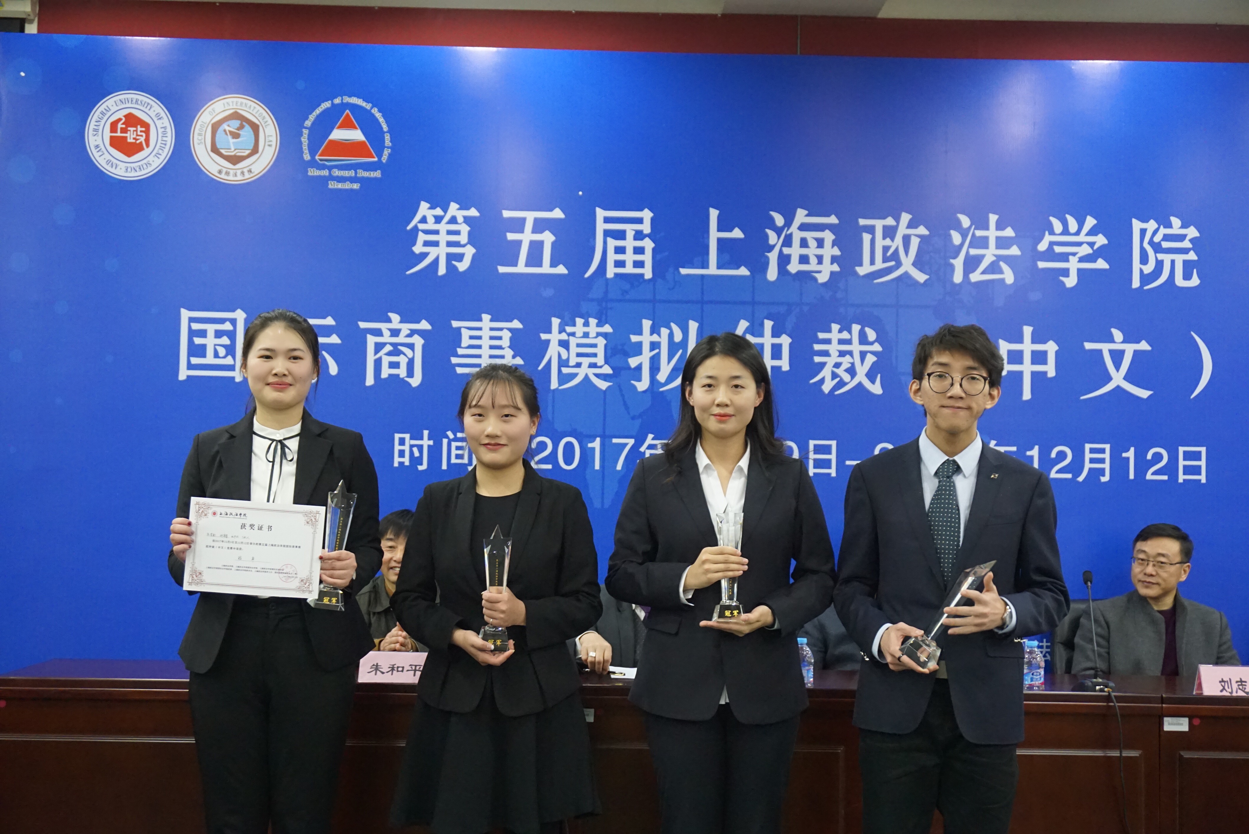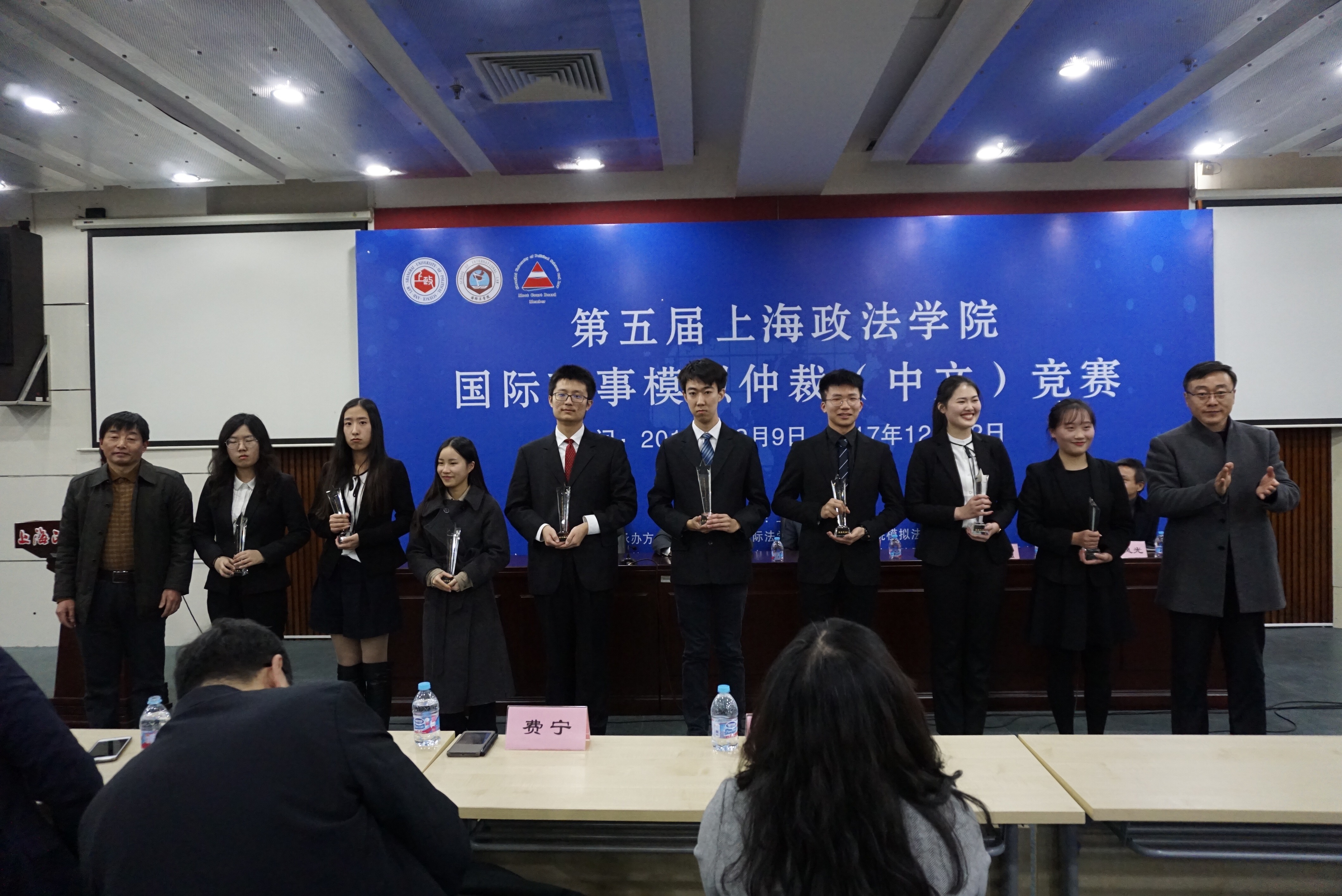 本次竞赛竞争激烈,共有34组队伍进行报名,通过11月25日的笔试,角逐出16个最佳队伍参加了正式循环赛。12月9日,经过一天的竞赛,选拔出前四强队伍进入半决赛。12月9日晚举行了半决赛,由上海市光大律师事务所合伙人吴海、上海跨界市场营销有限公司总裁康骐、上海神开石油化工装备股份有限公司法务总监兼证券事务代表王振飞律师、欧普照明股份有限公司法律顾问闫飞律师、国际交流处副处长张正怡副教授、国际法学院蔡鑫博士担任仲裁员,产生最终进入决赛的两支队伍。