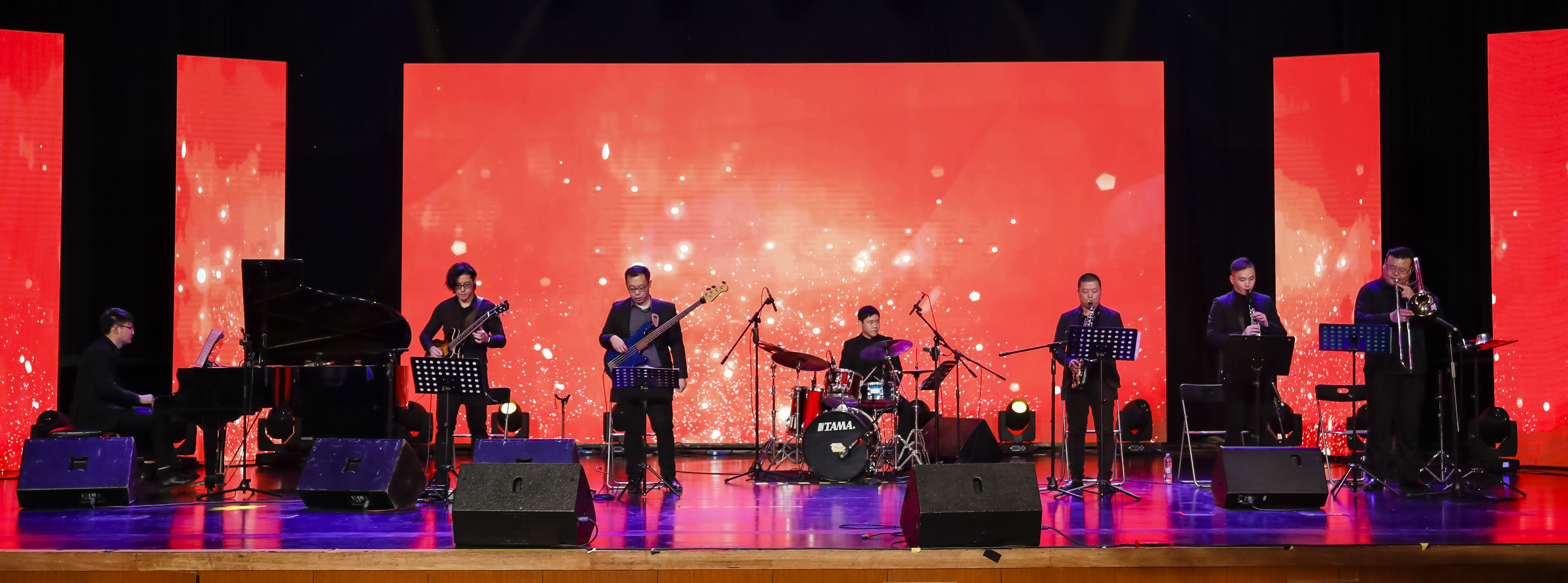 本次新年音乐会邀请了RJ爵士乐团做专场演出。伴随着架子鼓激昂的鼓点,音乐会拉开了序幕。随后,演奏家们纷纷登场,为大家带来倾情演出。