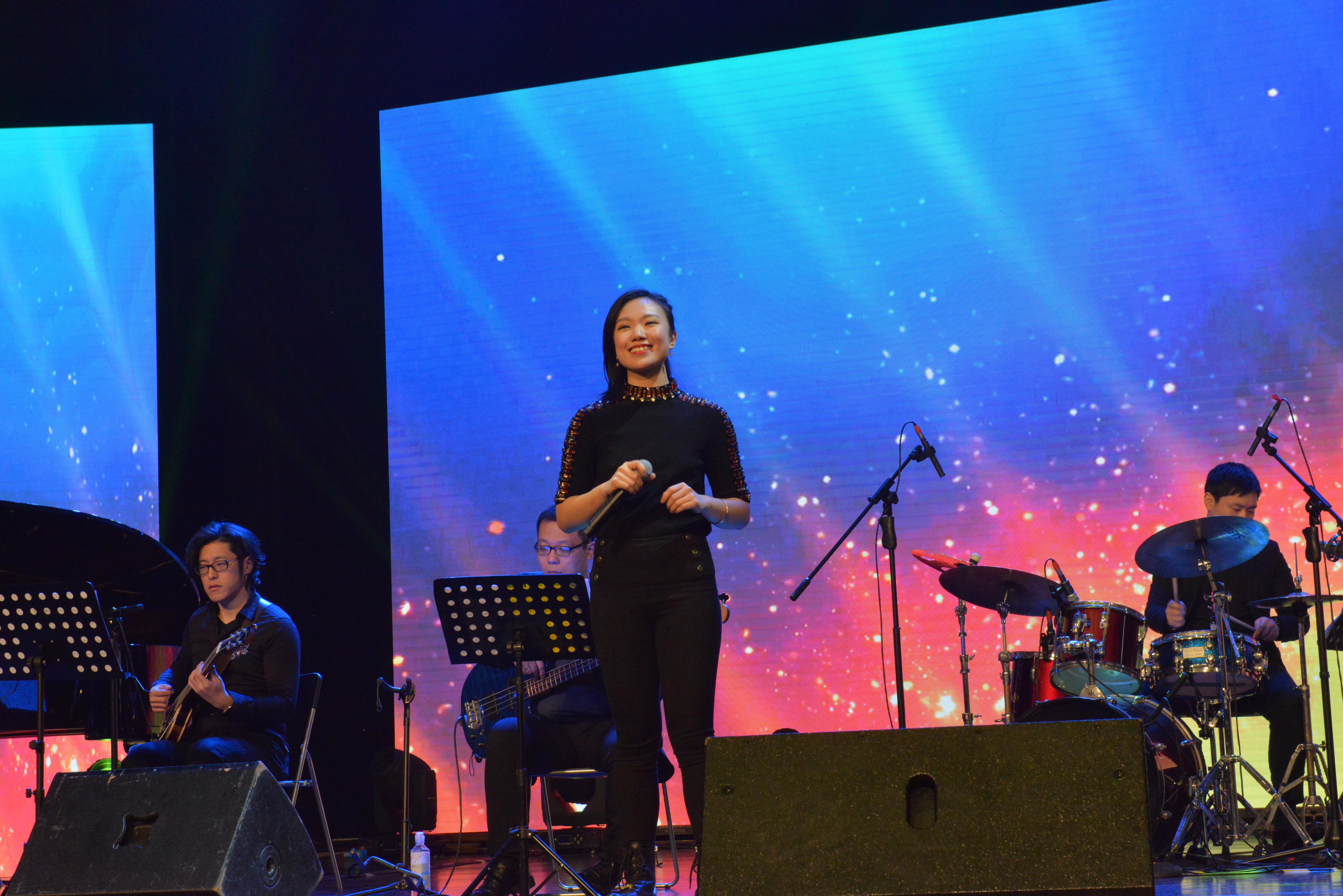 青年歌手伴着乐队的精彩演奏,为大家深情演唱了 Do nothing till you hear from me,Someone towatch over me,Come fly with me 等歌曲,精湛的唱功和动人的嗓音让人陶醉。