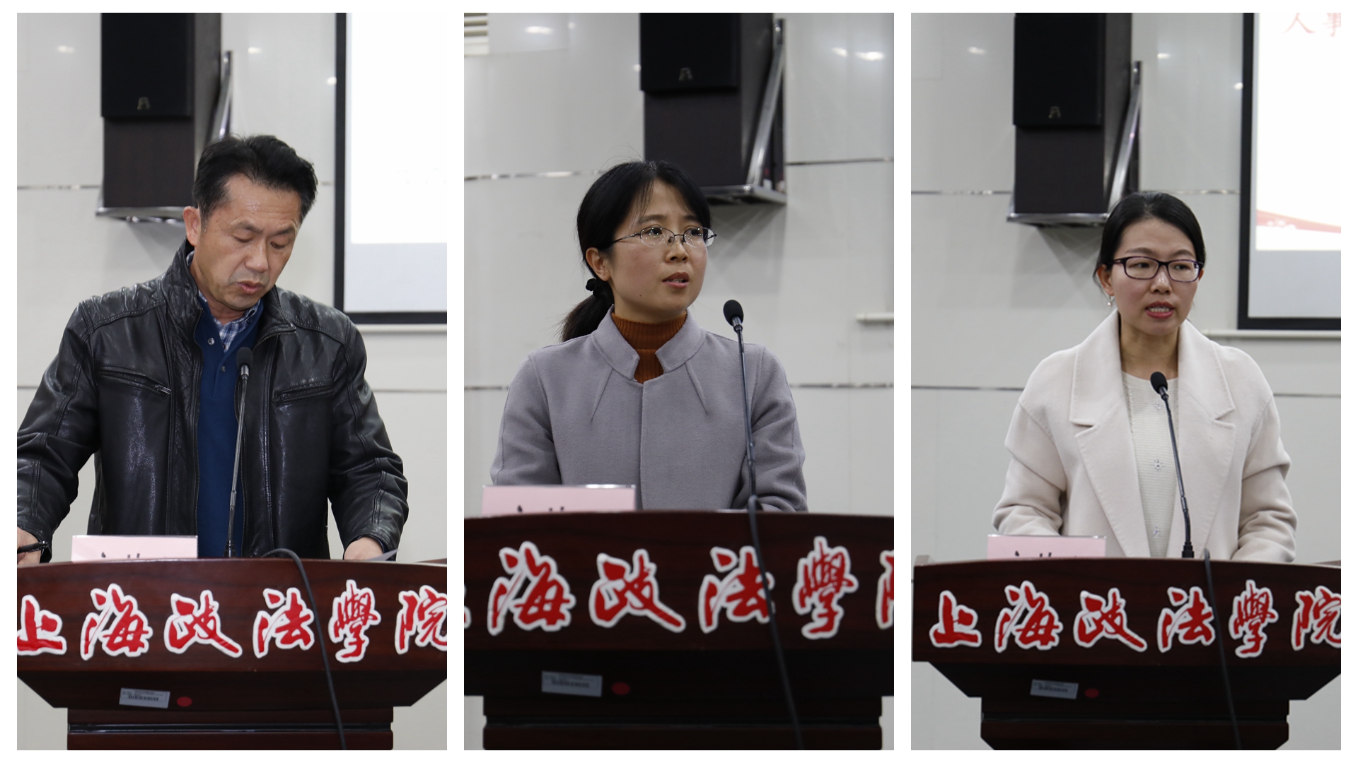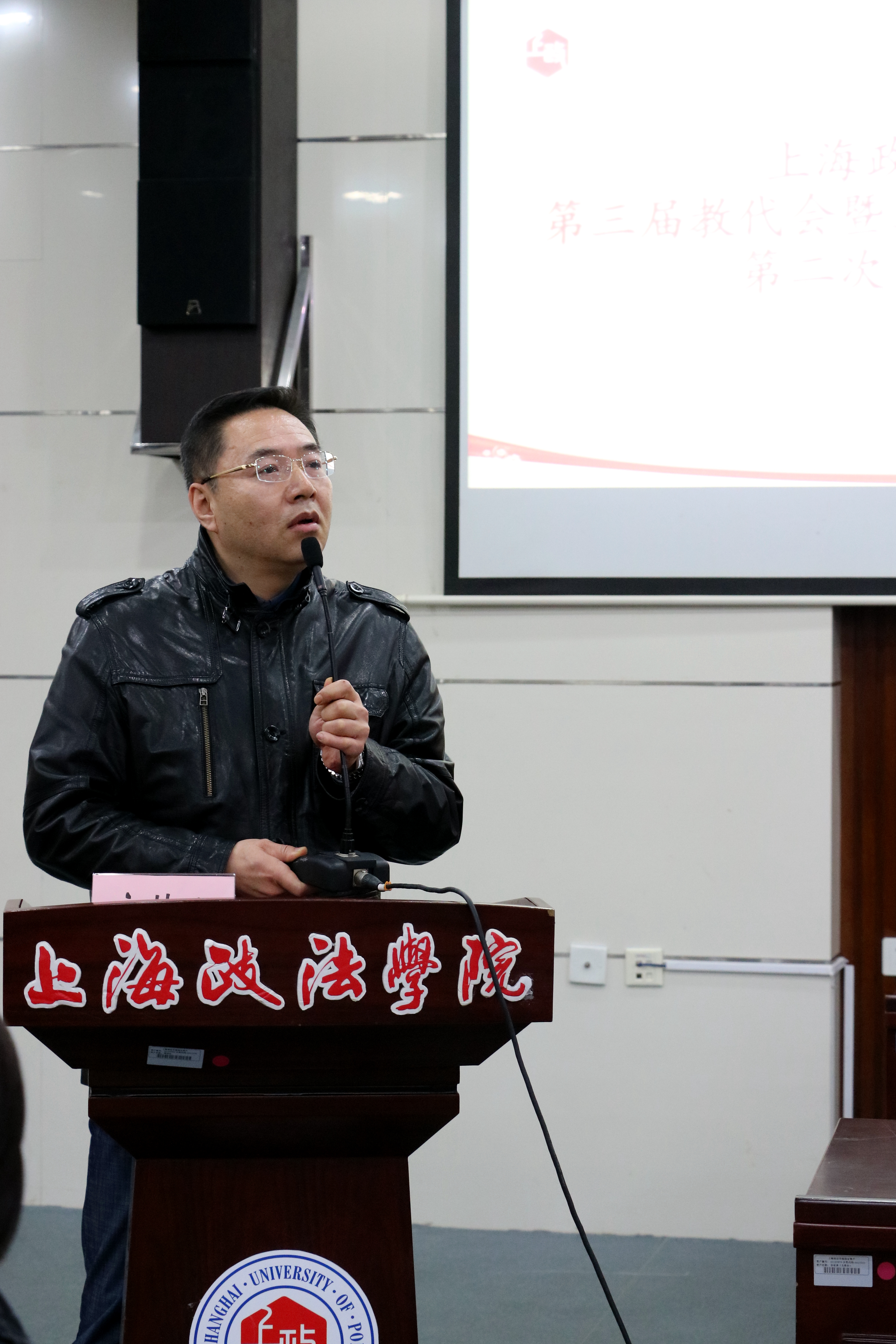 会议首先听取了教务处处长袁胜育所做的关于本科教学教师激励计划经费使用情况的说明、人事处处长韩同兰所做的关于学校绩效额度情况的说明;针对本次提交大会审议的《上海政法学院岗位设置及聘用管理暂行办法》和《关于开展上海政法学院岗位设置及聘用工作的通知》两份文件,人事处副处长江晨专门就文件起草以及采纳代表们预讨论期间所提出的合理化建议情况向大会做了专题说明。
