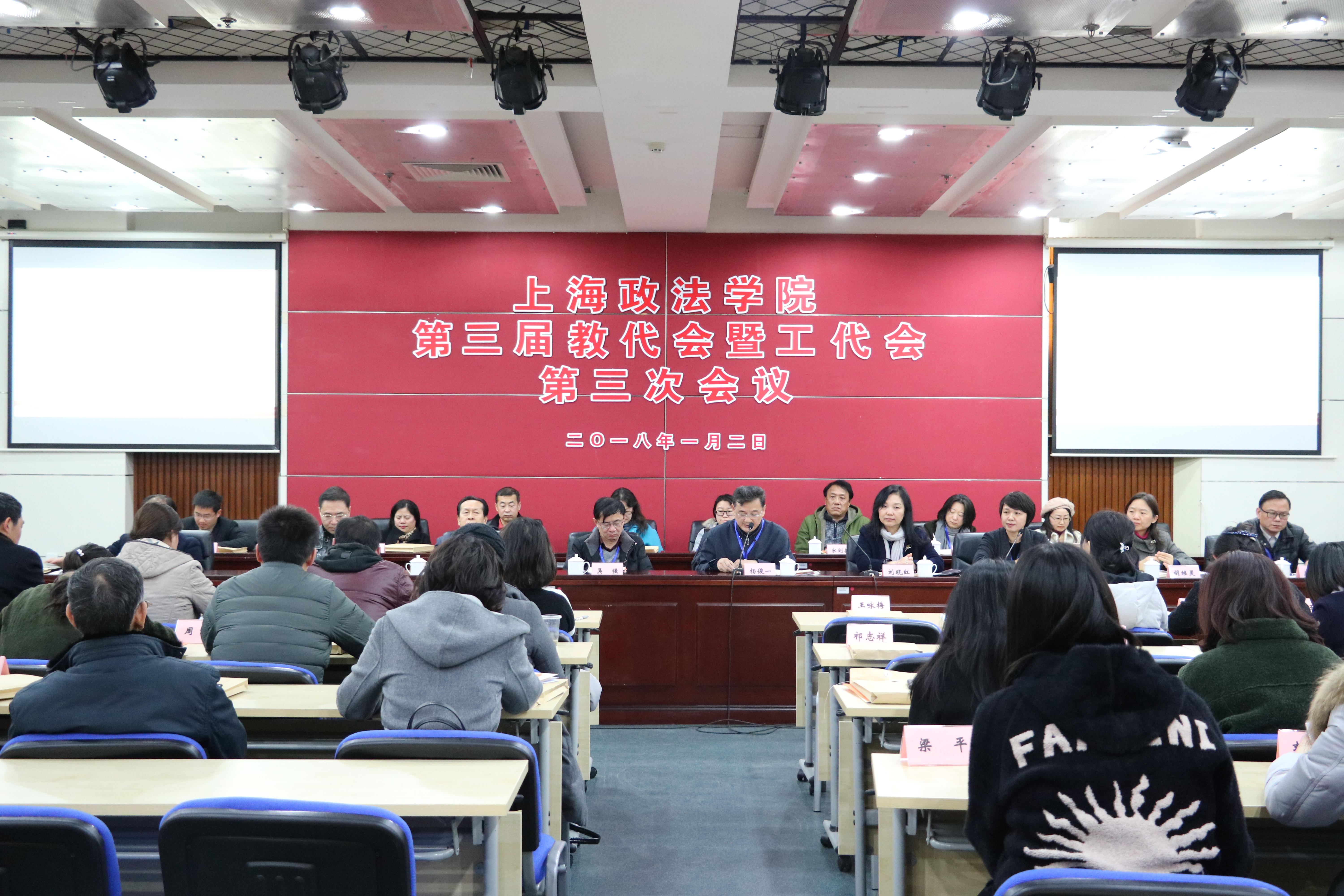 2018年1月2日下午,上海政法学院第三届教代会暨工代会第三次会议召开。70余名正式代表出席会议,学校各部门、二级学院有关同志列席了会议。会议由校党委副书记、副校长、工会主席周银娥主持。