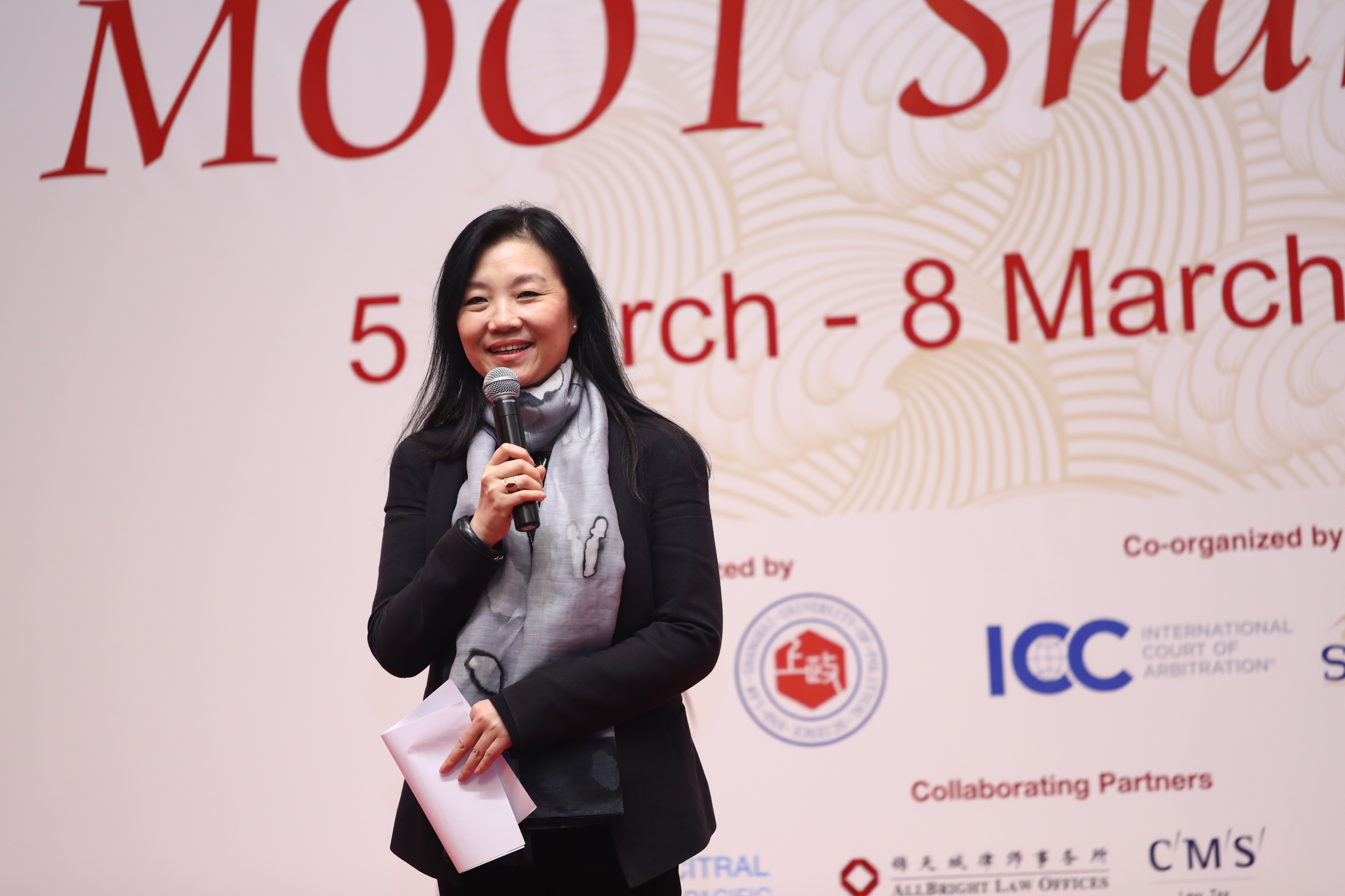 本届Moot Shanghai开幕式于5日上午在华东政法大学长宁校区隆重举行。上海政法学院副校长关保英教授、华东政法大学副校长张明军教授、上海国际仲裁中心副主任兼秘书长马屹先生、国际商会国际仲裁院代表黄一文女士、仲裁员代表阿达姆斯律师事务所合伙人李慧妮女士分别致辞,所有参赛队伍出席了开幕式。关保英首先向各协办单位致以诚挚感谢并指出,来自不同国家、不同传统、不同语言背景的学生同台竞技,是帮助青年法学生在全球化中提升法律理论素养和应用能力不可或缺的环节。
