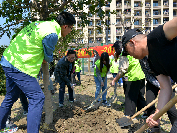 活动当天风和日丽,现场一片热火朝天,师生三五人一组,植树、浇水、培土,相互合作,每栽下一棵树,都认真地扶正树苗、踩实新土。校领导们一边挥锹铲土,一边与师生们交谈,关心询问校园绿化、环境美化等情况,鼓励同学们在学好专业知识的同时,积极参加环保和公益活动,为“建设天蓝、地绿、水清的美丽中国”,共建美丽校园贡献自己的力量。“十年树木,百年树人”,夏小和书记表示,我们要像培育树苗一样精心培养我们的学生,党员干部要经常走到学生中间,组织开展丰富多彩的活动,进一步拉近师生之间的距离,助力学生成长成才。