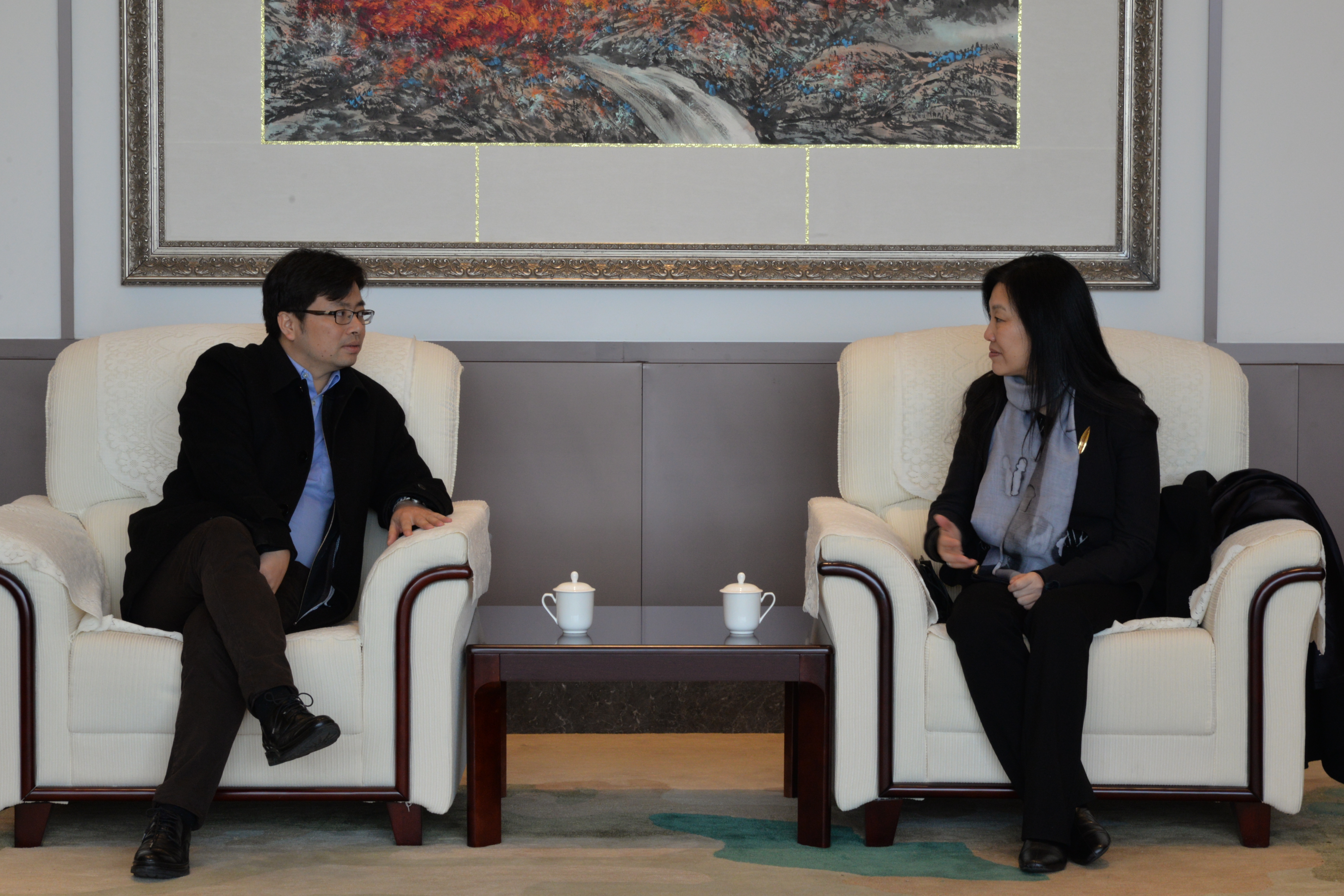 王蔚就学校总体外事工作情况、袁胜育就上海合作组织研究院建设情况、汪伟民就东北亚研究中心建设情况进行了汇报。
