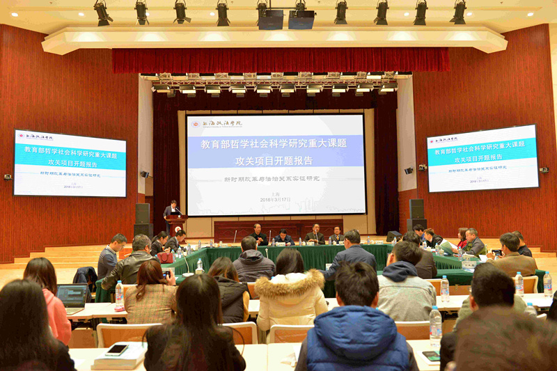 3月17日上午,我校首个教育部哲学社会科学研究重大课题攻关项目“新时期改革与法治关系实证研究”开题报告会在上海政法学院中国-上海合作组织国际司法交流合作培训基地国际会议中心举行。上海市政府法制办主任茆荣华、上海市社科院研究所所长叶必丰教授、上海财经大学校长助理郑少华教授、华东师范大学法学院名誉院长张志铭教授、南京市社科院政治学法学研究所所长朱未易出席并担任特邀专家。课题组首席专家关保英教授,课题组成员上海市政府法制办副主任刘平、苏州大学法学院教授黄学贤、浙江工商大学法学院教授骆梅英等,以及我校宪法学与行政法学专业的研究生出席了会议。