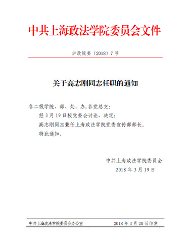 关于高志刚同志任职的通知