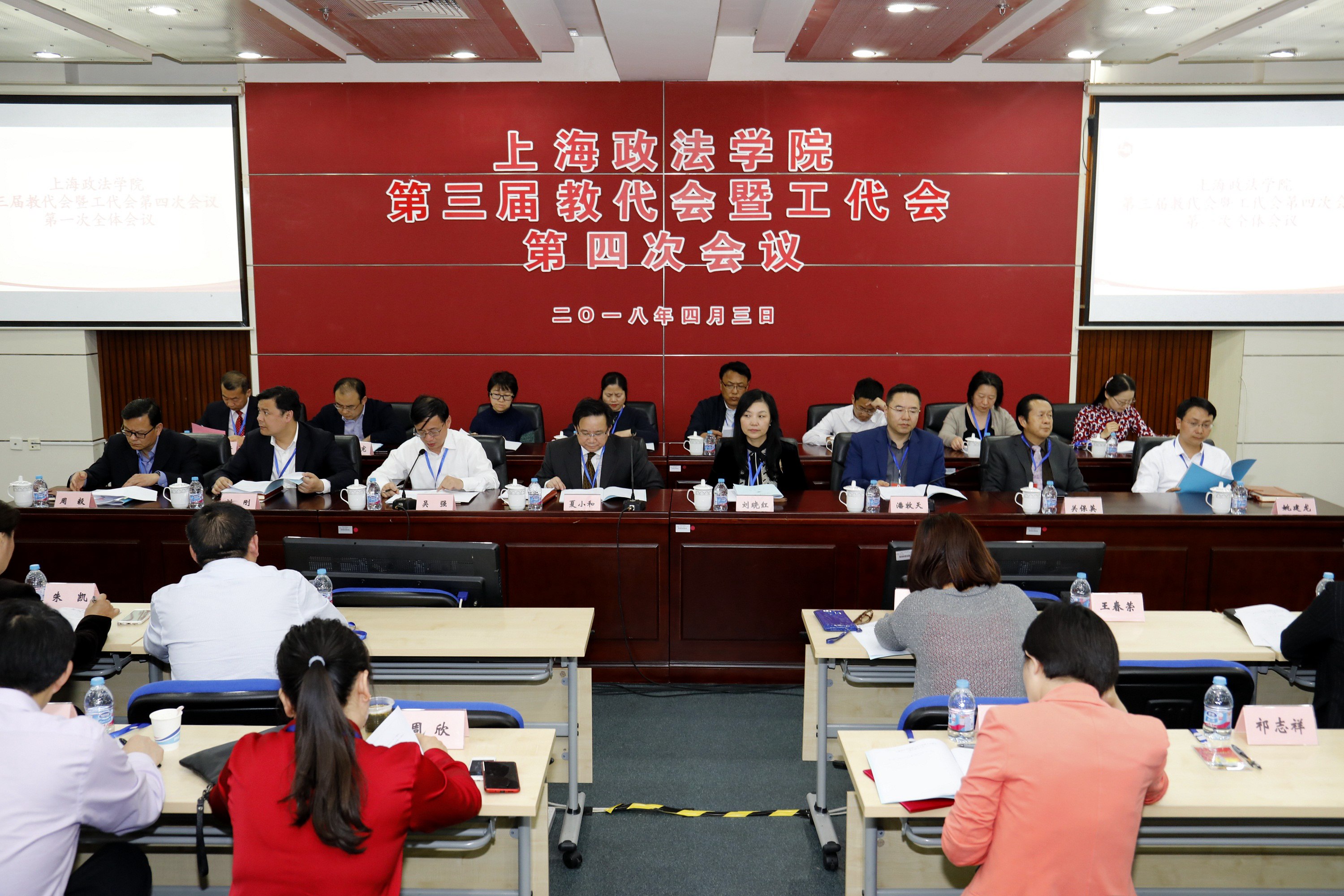 4月3日, 上海政法学院第三届教代会暨工代会第四次会议在庸夫楼101会议室召开。全体校领导、工会委员、教职工代表出席会议。