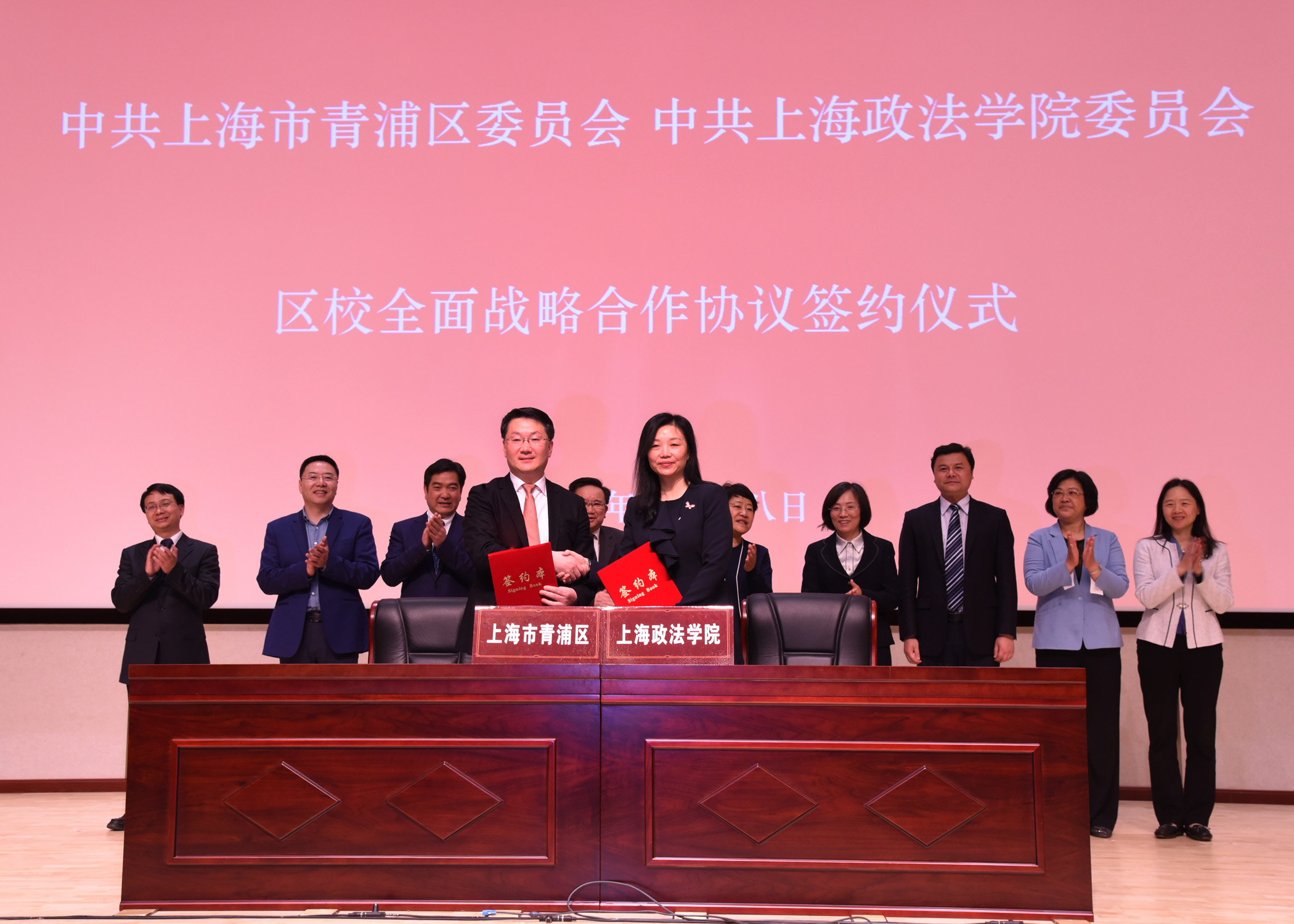 4月18日下午,中共上海市青浦区委员会与中共上海政法学院委员会中心组联组学习会暨区校全面战略合作协议签约仪式在上海政法学院中国-上海合作组织国际司法交流合作培训基地国际会议中心举行。青浦区委、上海政法学院党委理论学习中心组(扩大)全体成员出席会议。