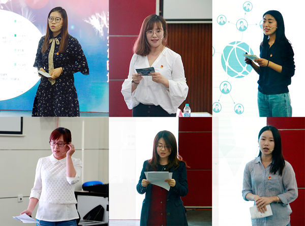 展示交流环节中,各学院团委书记通过PPT、照片、视频等方式,从学院团委的工作理念出发进行了为时8分钟的展示汇报,针对组织建设、社会实践、志愿者活动、校园文化活动、科技创新活动和学院特色活动六个板块对学院团委一年来的工作进行总结展示与交流分享,聚焦工作绩效、凸显工作内涵,充分展现了各学院团委一年来围绕学校学院中心工作在引领青年、凝聚青年、服务青年的过程中所取得的突出成绩。