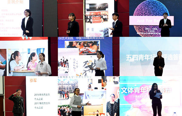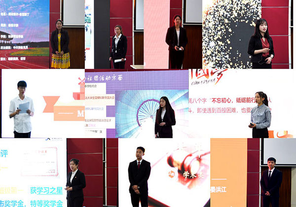 经过前期初评,产生的23名青年标兵候选人按抽签顺序逐一上台答辩。他们通过PPT、视频等形式,将自己在本学年中的学习情况、学生工作情况、志愿服务情况、文体活动情况等综合成绩和个人特色向各位评审及观众展示,表达了一路成长的感悟与收获,不仅展现了我校青年学生在专业领域上的过硬知识素养,更展现了对学校培育以及给予自己广阔平台发展自我的感激之情。