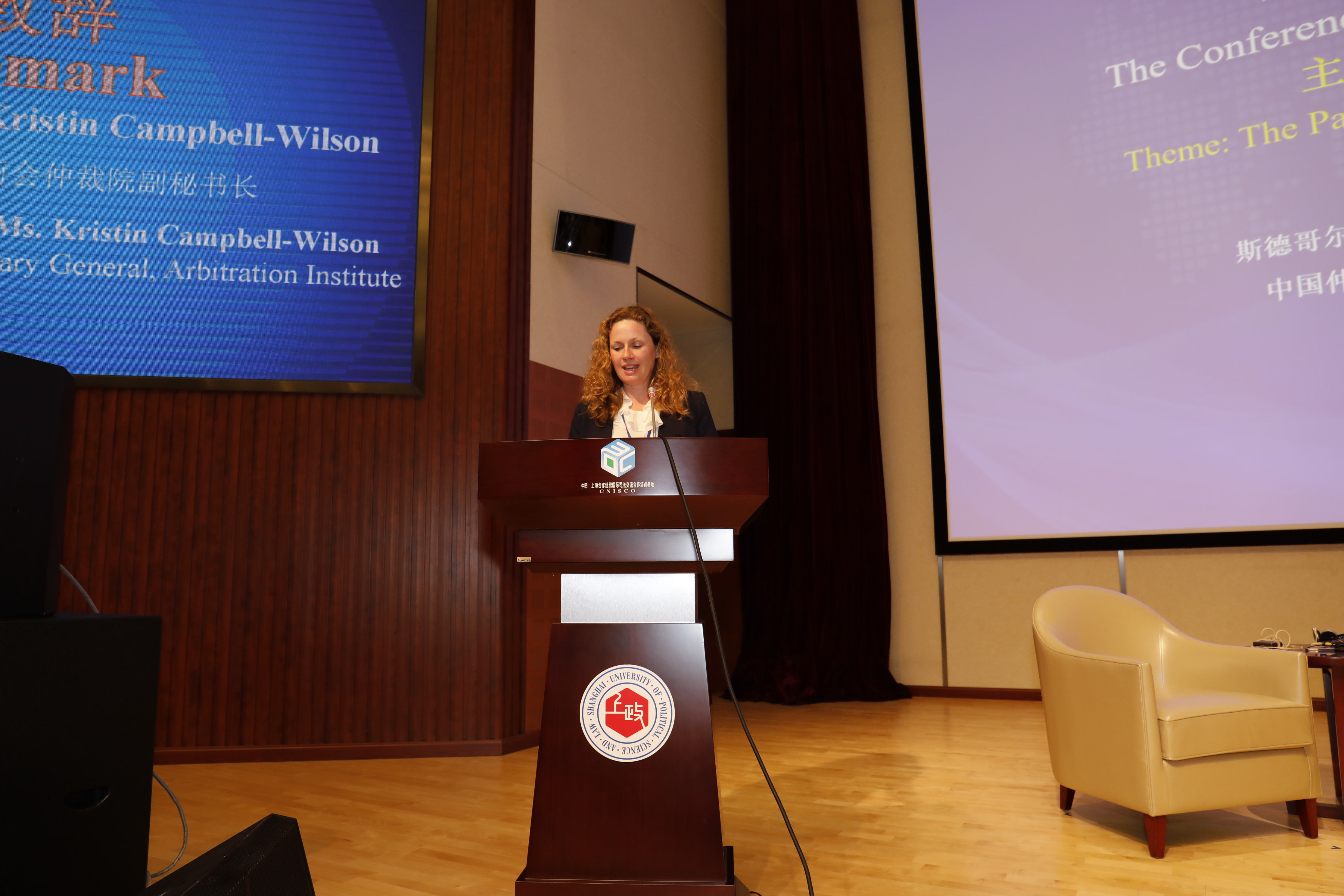 Kristin Campbell-Wilson在致辞中谈到,斯德哥尔摩商会仲裁院与上海政法学院在学术研究、业务实践以及师生交流等方面达成了广泛共识。此次中国仲裁国际行研讨会的召开,也是双方达成进一步对话合作的良好开端。