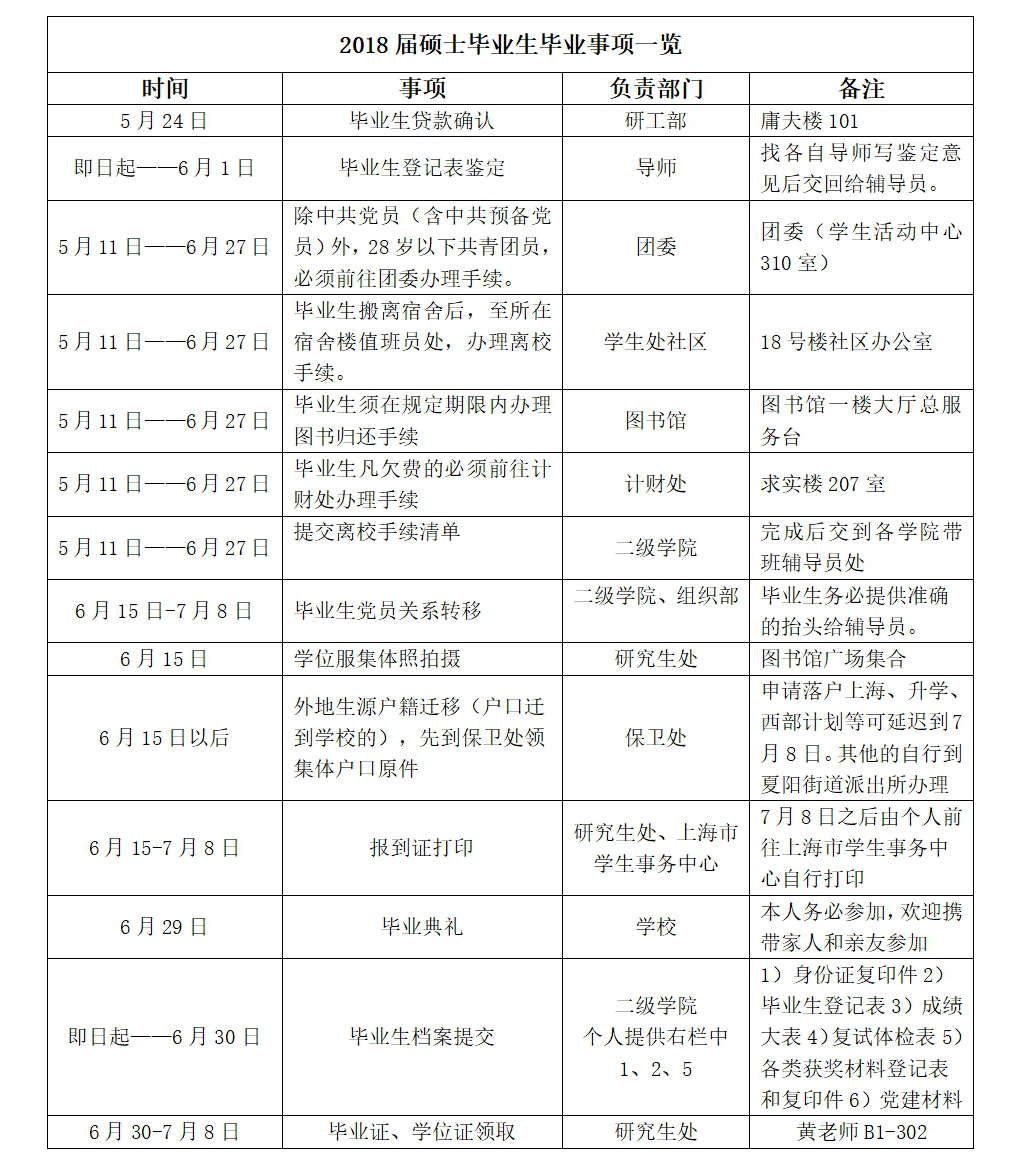 关于做好我校2018届硕士毕业生毕业离校工作的通知