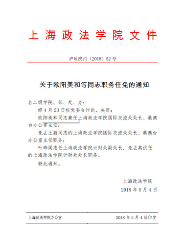 关于欧阳美和等同志职务任免的通知