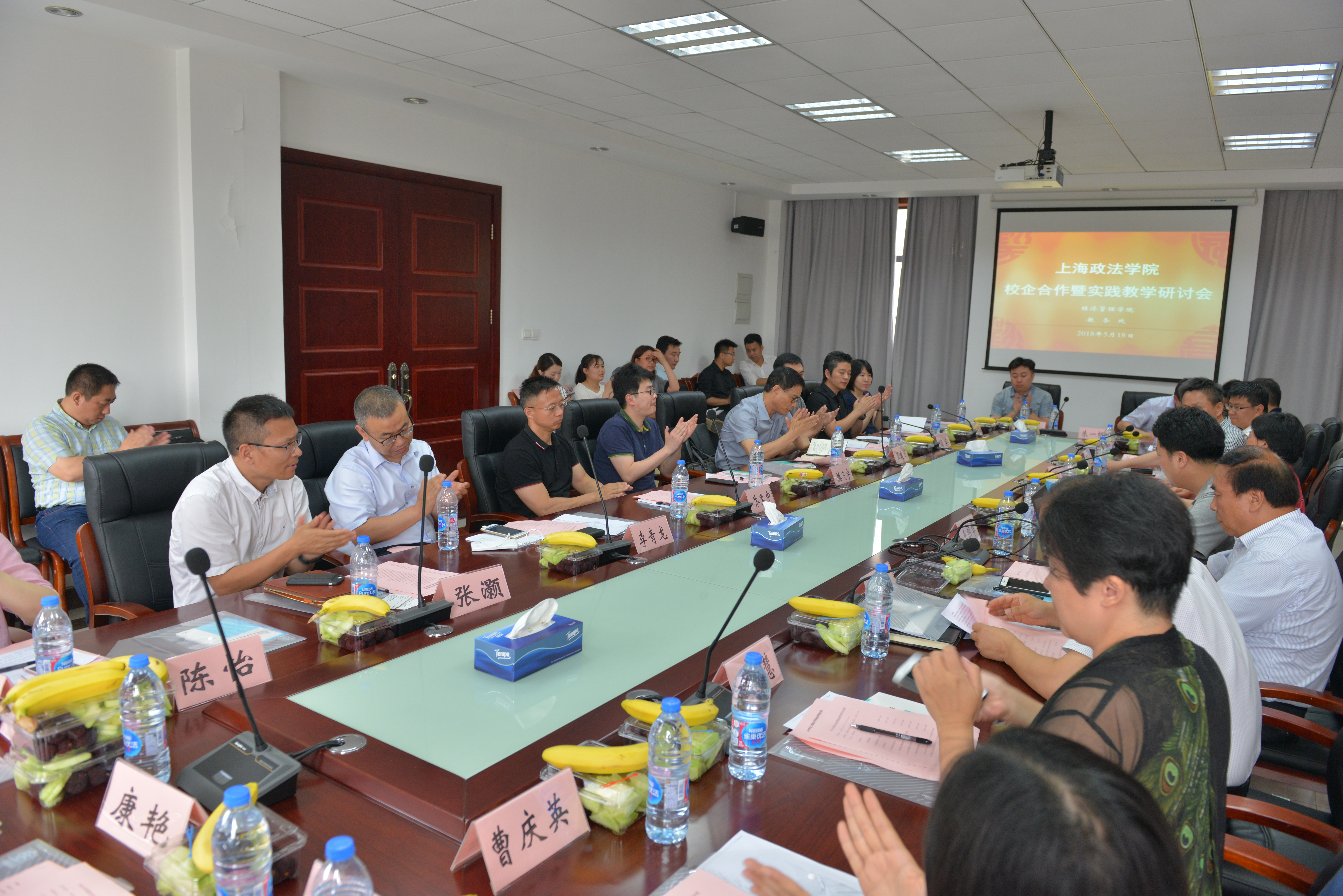 5月18日下午,由经济管理学院、教务处联合举办的“2018年度上海政法学院校企合作暨实践教学研讨会”在明文苑A3-201会议室召开。来自27个实习基地的34名企业家和实习单位人事经理等参加了会议。我校副校长关保英教授、教务处副处长陈风光,经济管理学院院长王明华教授、党总支书记姜玉卿、副院长刘宪、国贸教研室主任徐华以及辅导员代表孙颖等出席了会议。会议由姜玉卿主持。